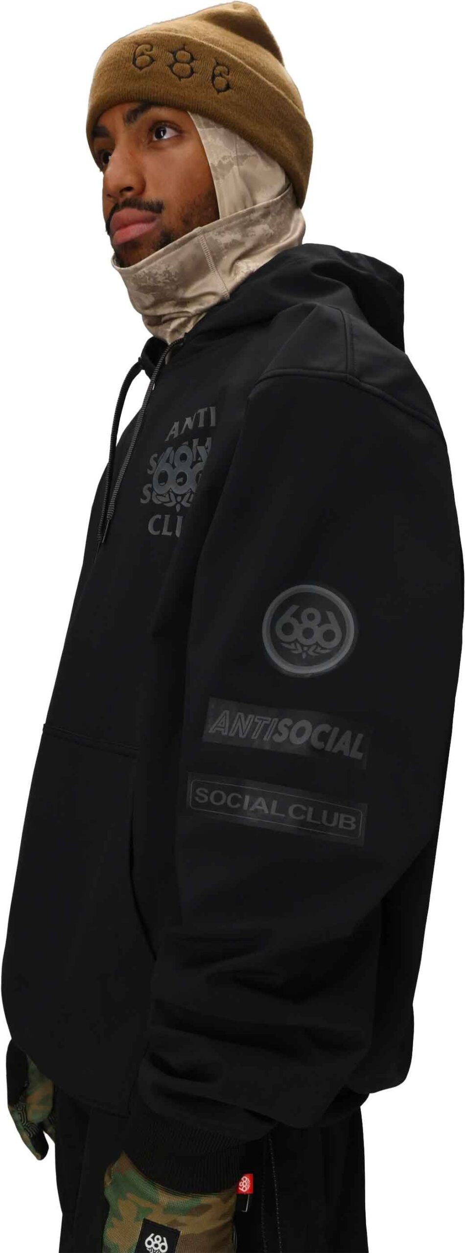 Sweat à capuche 686 Waterproof Assc F1 Hoody Black pour homme, imperméable et respirant infiDRY®, extensible 4 ways, intérieur polaire, aération sous les bras, poche avant zippée.