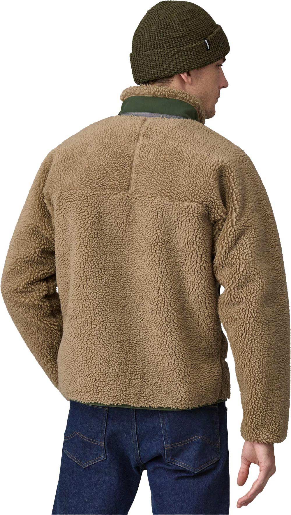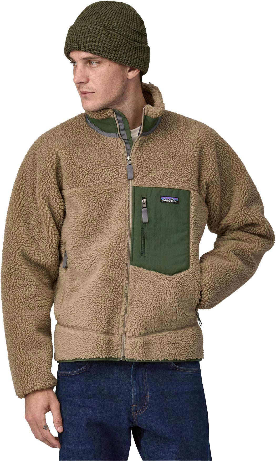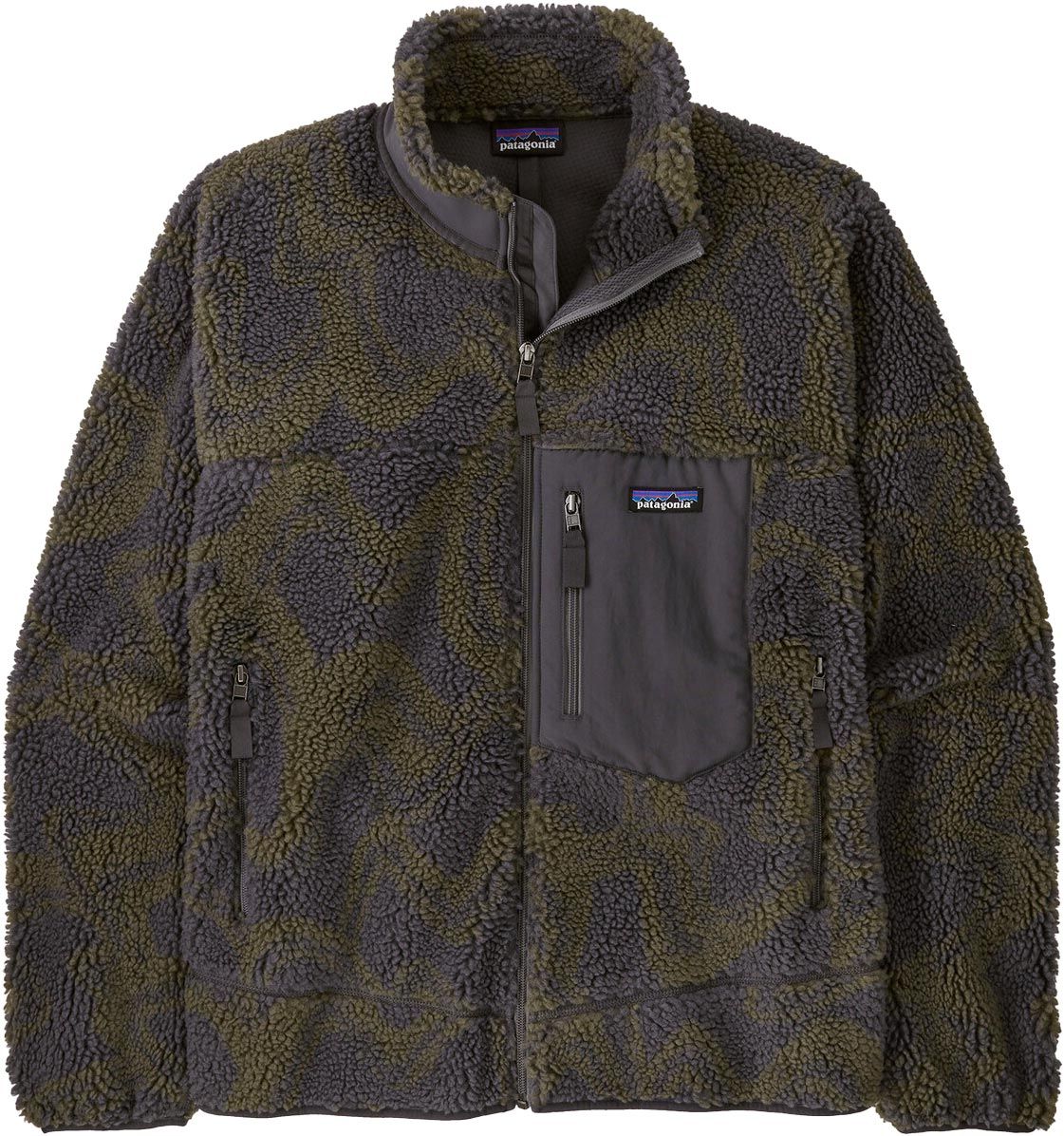 Pol Patagonia Classic Retro-X Jkt Currents Forge Grey homme : polaire sherpa laminée coupe-vent, doublure mesh respirante, fermeture intégrale et poches zippées pour les journées froides et venteuses.