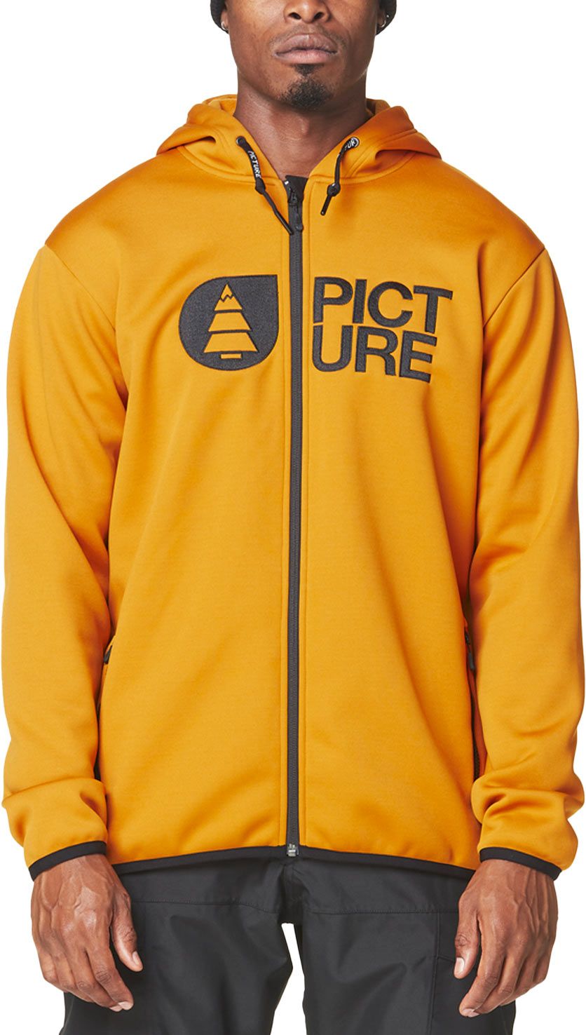 Sweat à capuche Picture Organic Clothing Park Zip Tech Honey homme, en polyester recyclé, régule l’humidité avec Dry Now/Feel, coupe droite et élastiques pour chaleur et liberté de mouvement.