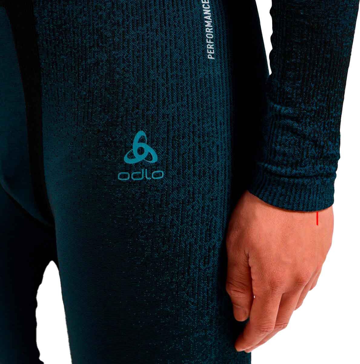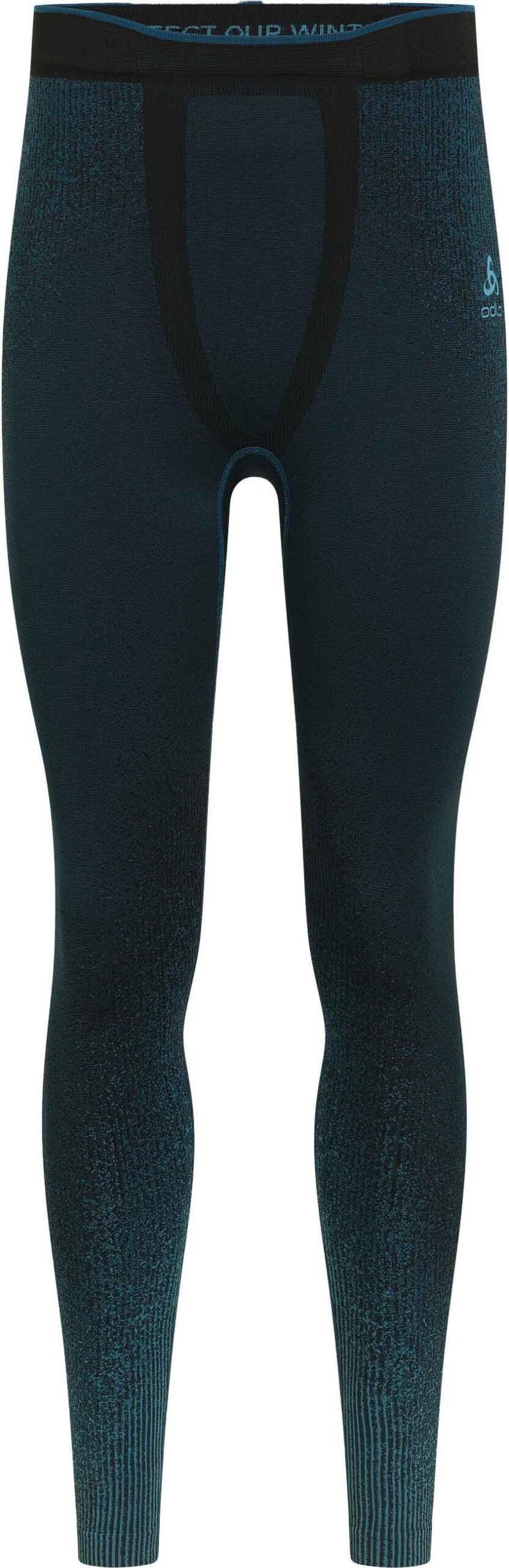 Collant technique long Odlo Performance Warm Blackcomb Provincial Blue homme, sans coutures, chaud et respirant pour activités hivernales intenses, en matière recyclée avec traitement antibactérien naturel.