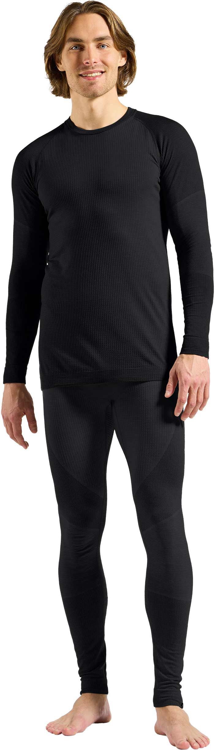 Le collant technique Seamless Performance Black Odlo homme allie laine mérinos thermorégulatrice et fibres synthétiques respirantes pour un confort sans couture sur les pistes enneigées.