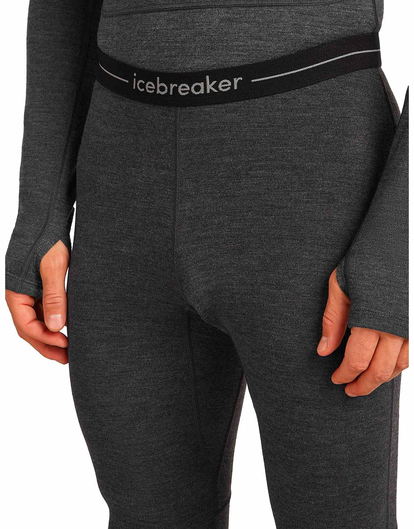 Legging Icebreaker Merino 260 ZoneKnit Jet Heather homme : couche chaude en laine mérinos 260 g/m² thermorégulante, ventilation ciblée ZoneKnit™, coutures plates et gousset pour liberté de mouvement en effort intense.