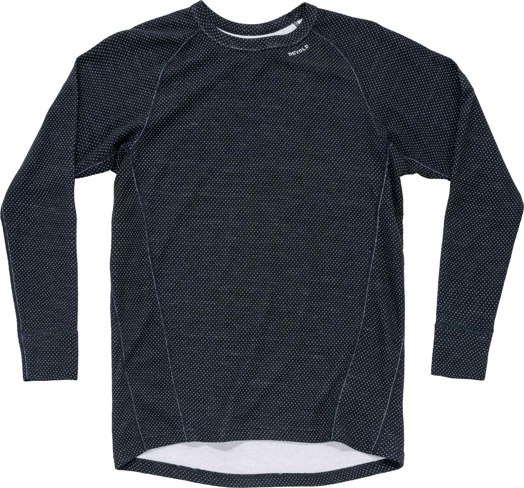 Le T-shirt thermique Devold Duo Active Merino 205 Shirt Ink homme combine ThermoLite® intérieur pour l’évacuation de l’humidité et laine mérinos extérieure pour l’isolation, avec coutures plates, manches raglan et dos allongé pour un confort total en hiver.
