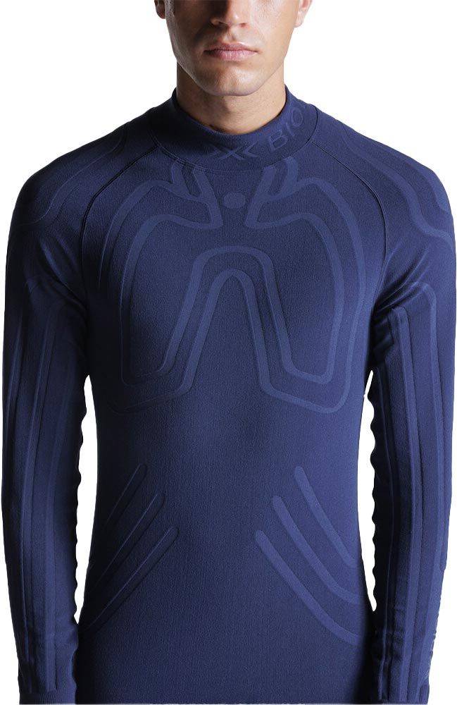 Sous-vêtement thermique X-Bionic Heatloop Shirt LS Marine homme : fibres hygrodiffuseuses, technologie HeatLoops® inspirée de la fourrure d’ours polaire et canaux d’air type termitière pour évacuer l’humidité, répartir la chaleur et maintenir la température idéale en conditions extrêmes de ski, snowboard, biathlon ou ski de randonnée.