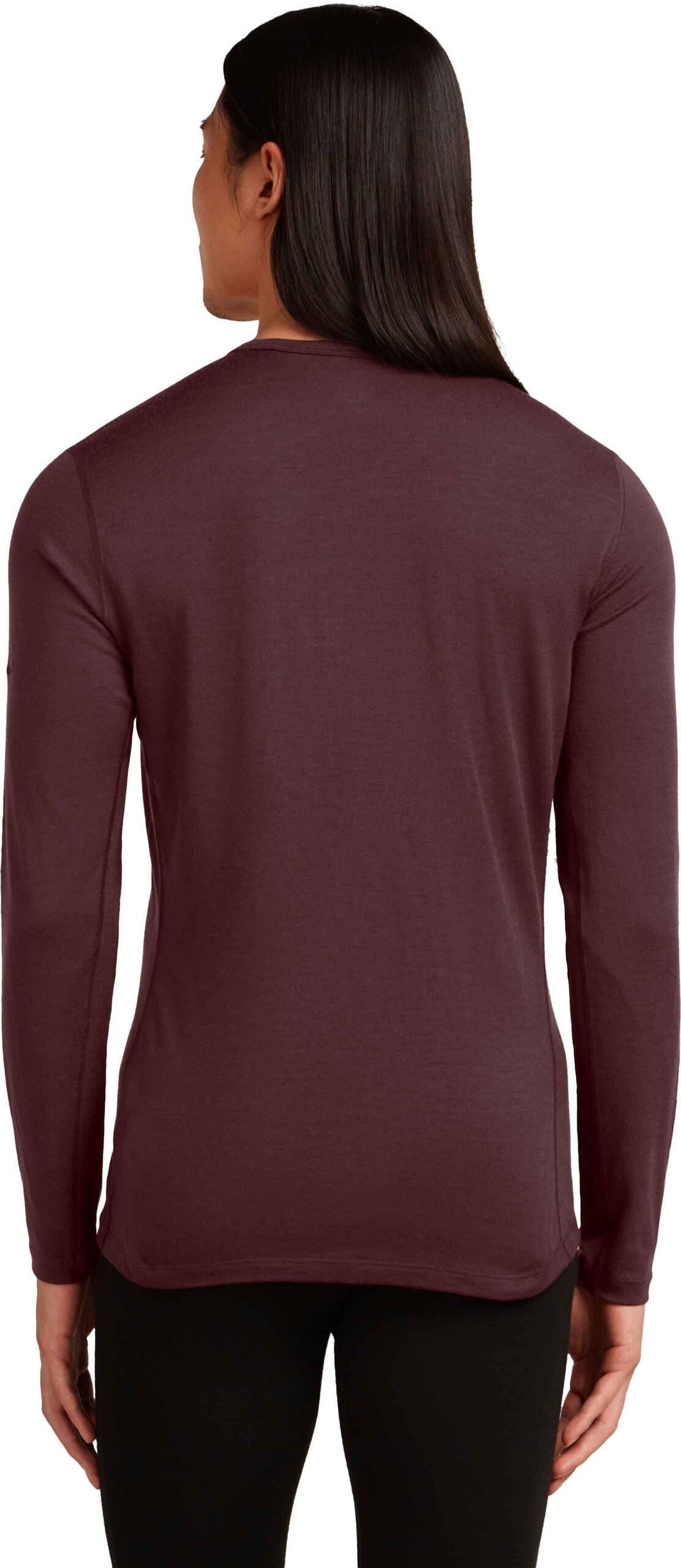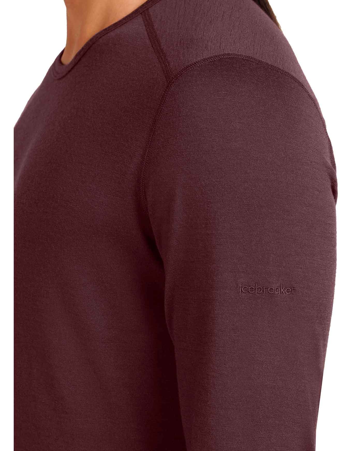 Haut Icebreaker 200 Oasis LS Crewe Java en laine mérinos 200 g/m², col rond, régule la chaleur, résiste aux odeurs, coutures décalées et soufflets sous les bras pour le confort en toutes saisons.