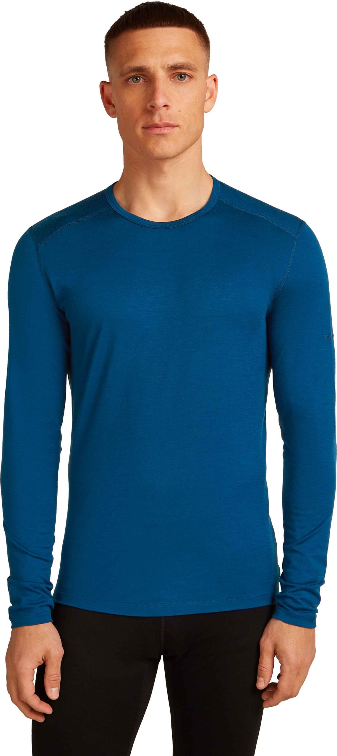 Sous-vêtement technique homme Icebreaker Merino 200 Oasis LS Crewe Atlantis en laine mérinos thermorégulante, anti-odeurs et respirante, avec coutures plates et dos allongé pour le confort outdoor.