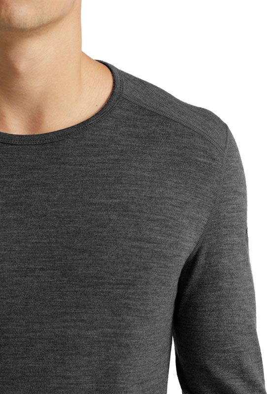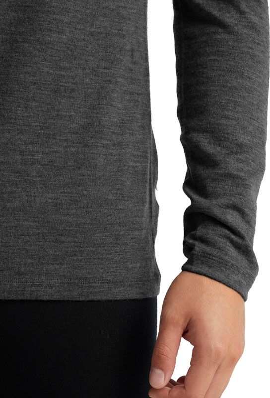 Icebreaker Merino 260 Tech LS Crewe Gritstone Heather, couche de base homme en laine mérinos, offre chaleur, respirabilité et résistance aux odeurs pour ski, rando ou hiver. Coutures décalées épaules et latérales extérieures évitent frottements et irritations en activité.