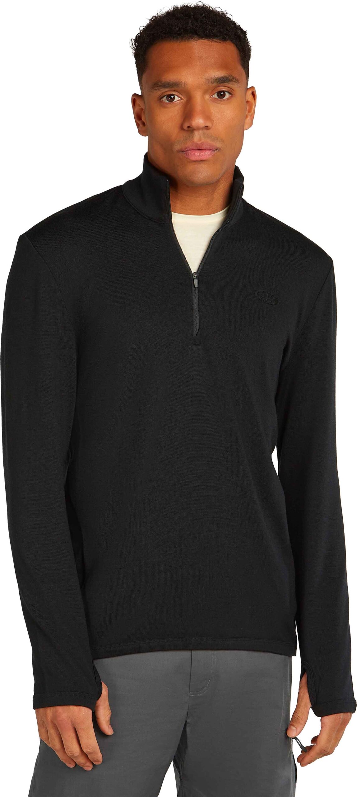 Haut Icebreaker Merino 300 Original LS Half Zip en laine mérinos 100 %, thermorégulante, anti-odeurs, avec col demi-zip et passe-pouces pour randonnée, ski ou voyage.
