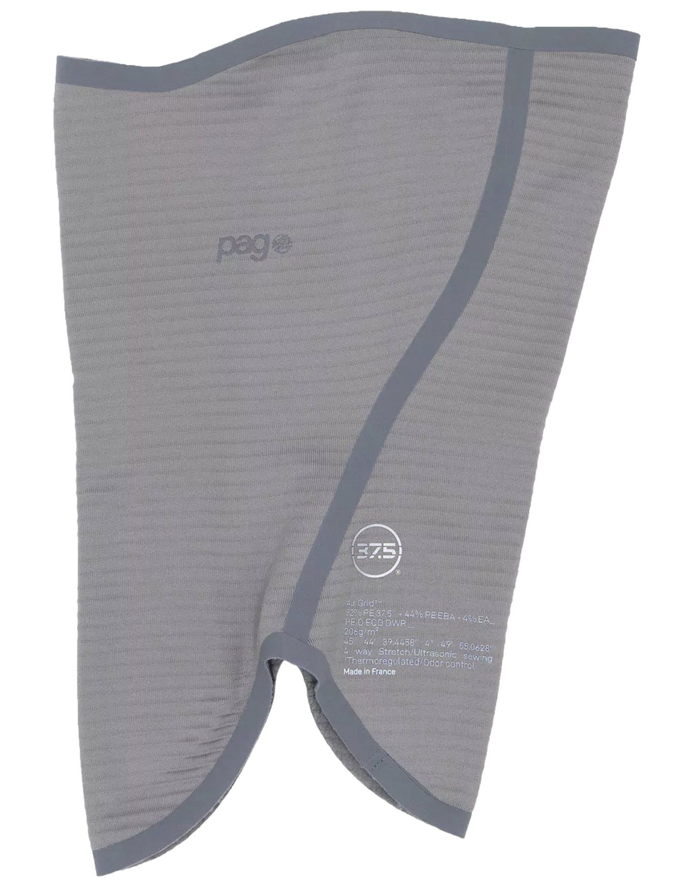 Tour de cou Neck Pro Air Grid™ Steeple Grey Pag : tissu synthétique extensible 4 directions, régulation thermique et anti-odeurs, traitement déperlant HEIQ ECO DWR, protection cou-visage-poitrine pour entraînements intenses.