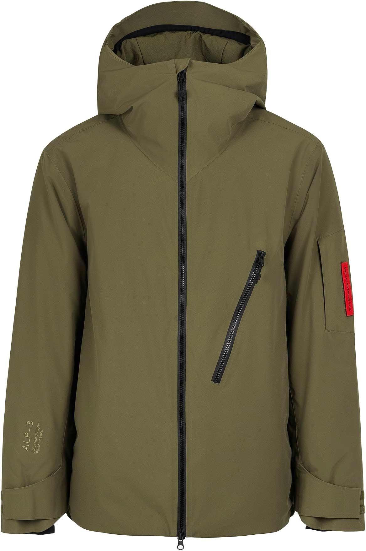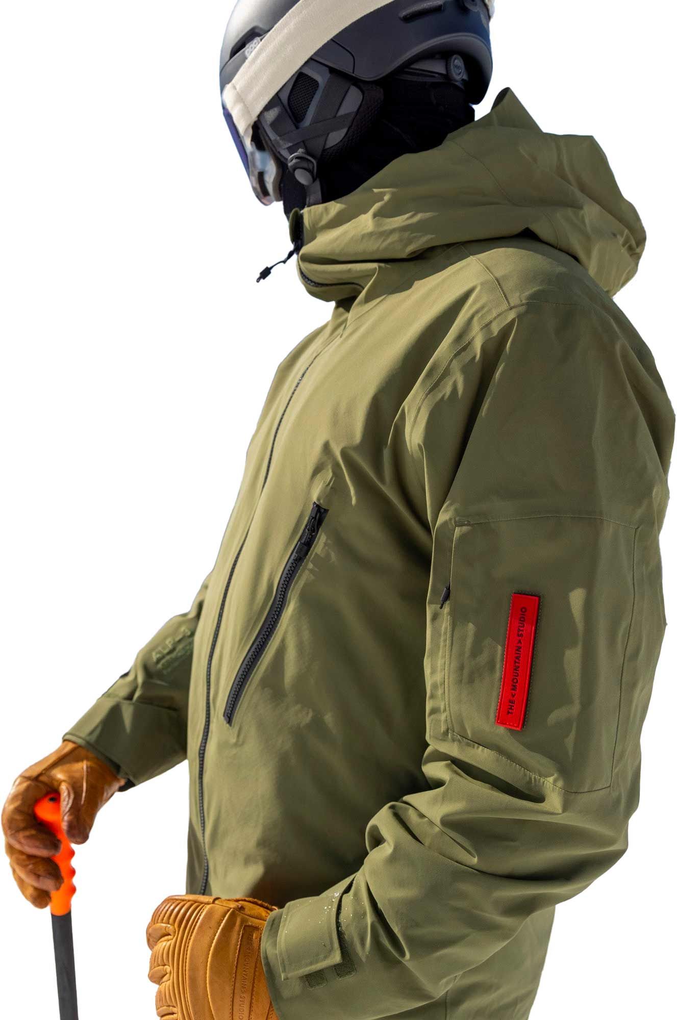 The Mountain Studio 2L Stretch Insulated Jacket Winter Moss est une veste ski snowboard homme imperméable, coupe-vent et respirante avec membrane ALP-3, isolation PrimaLoft® Gold Eco stretch, capuche casque réglable et coutures étanchées.