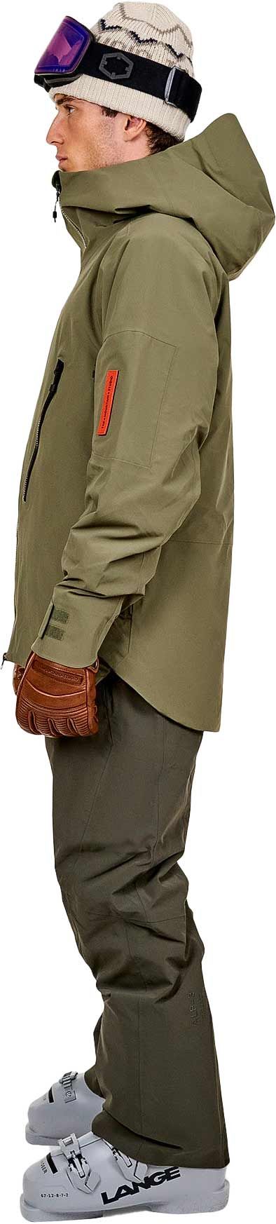 Protection optimale contre les intempéries est offerte par une capuche ajustable intégralement, conçue pour s’accommoder d’un casque et munie d’une visière incorporée. Le raccord anti-neige intérieur, les fermetures éclair YKK Aquaguard imperméabilisées et l’agencement réfléchi des poches viennent parfaire l’équipement de cette veste destinée aux journées prolongées sur neige damée.