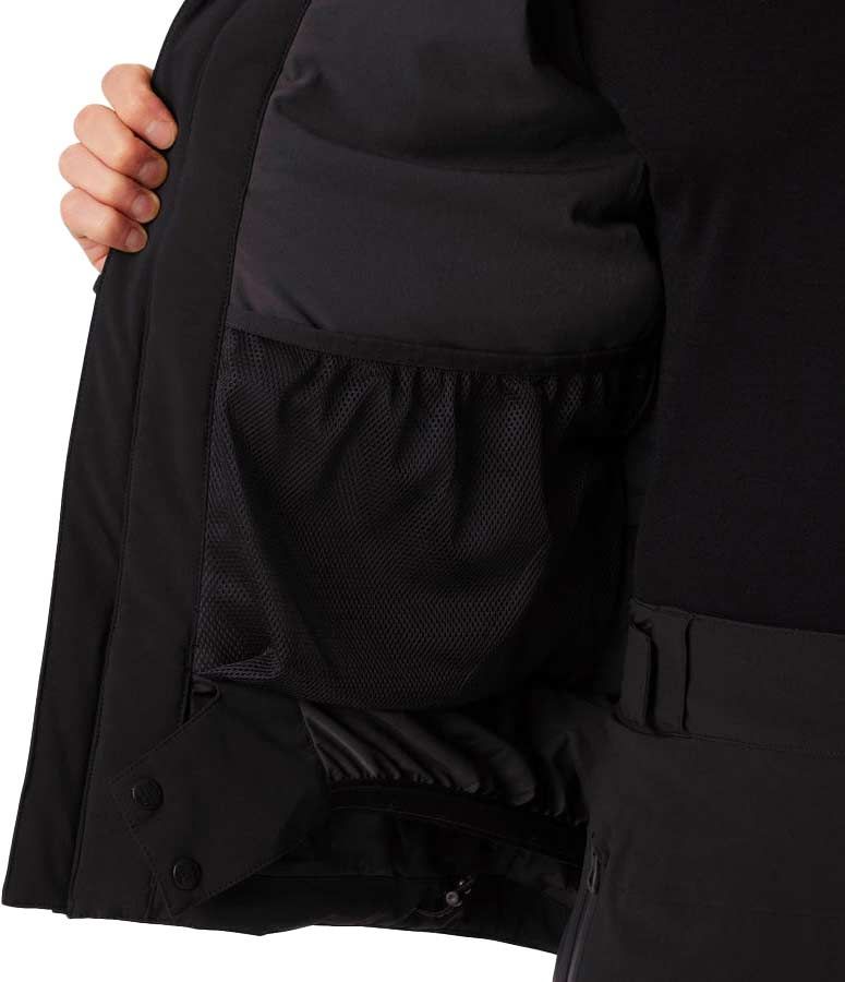 Du point de vue de l’équipement, on retrouve une capuche compatible avec le casque, un col montant, des manches articulées, des poignets ajustables, des passants pour les pouces ainsi qu’une jupe pare-neige. L’ensemble est complété par deux poches situées sur la poitrine, une poche dédiée au forfait et une poche Life Pocket™ dont la fonction est de prolonger l’autonomie du téléphone lors des températures basses.