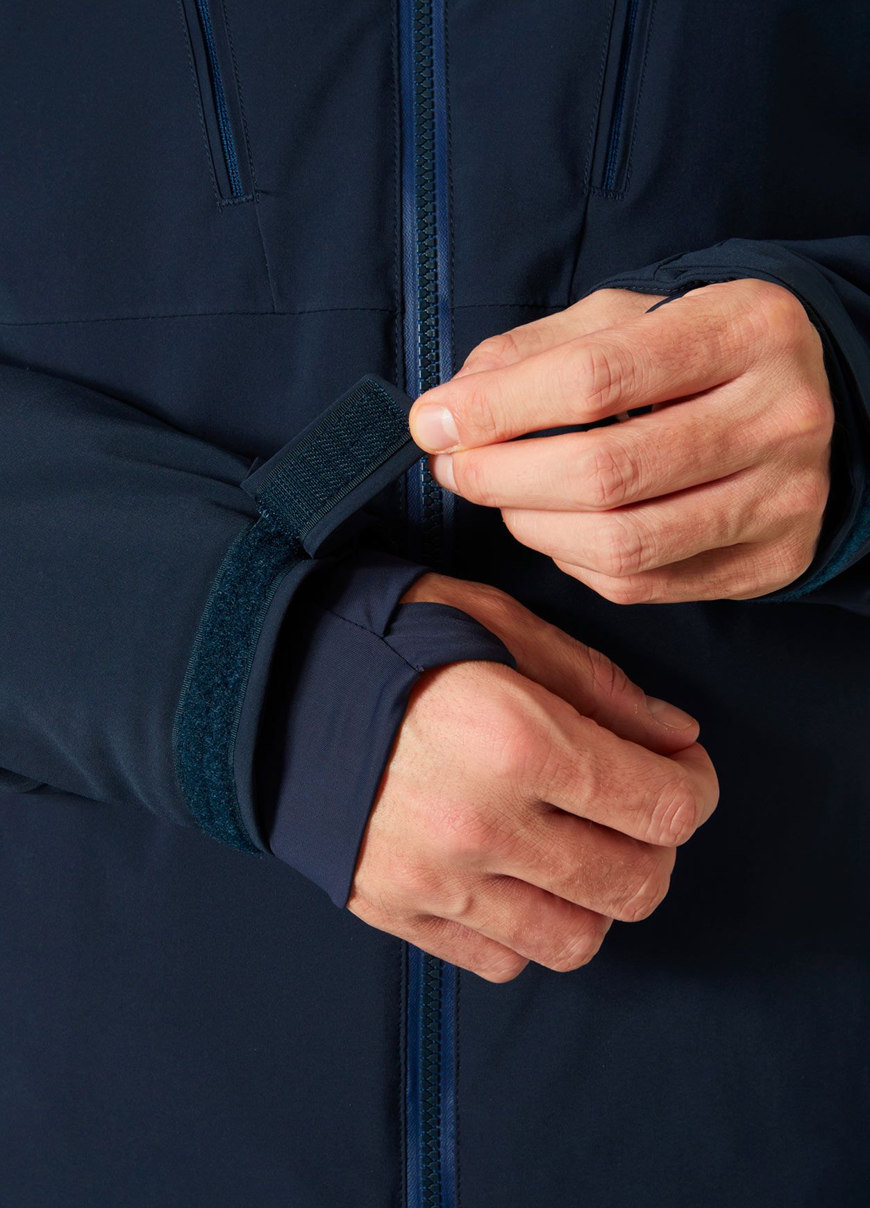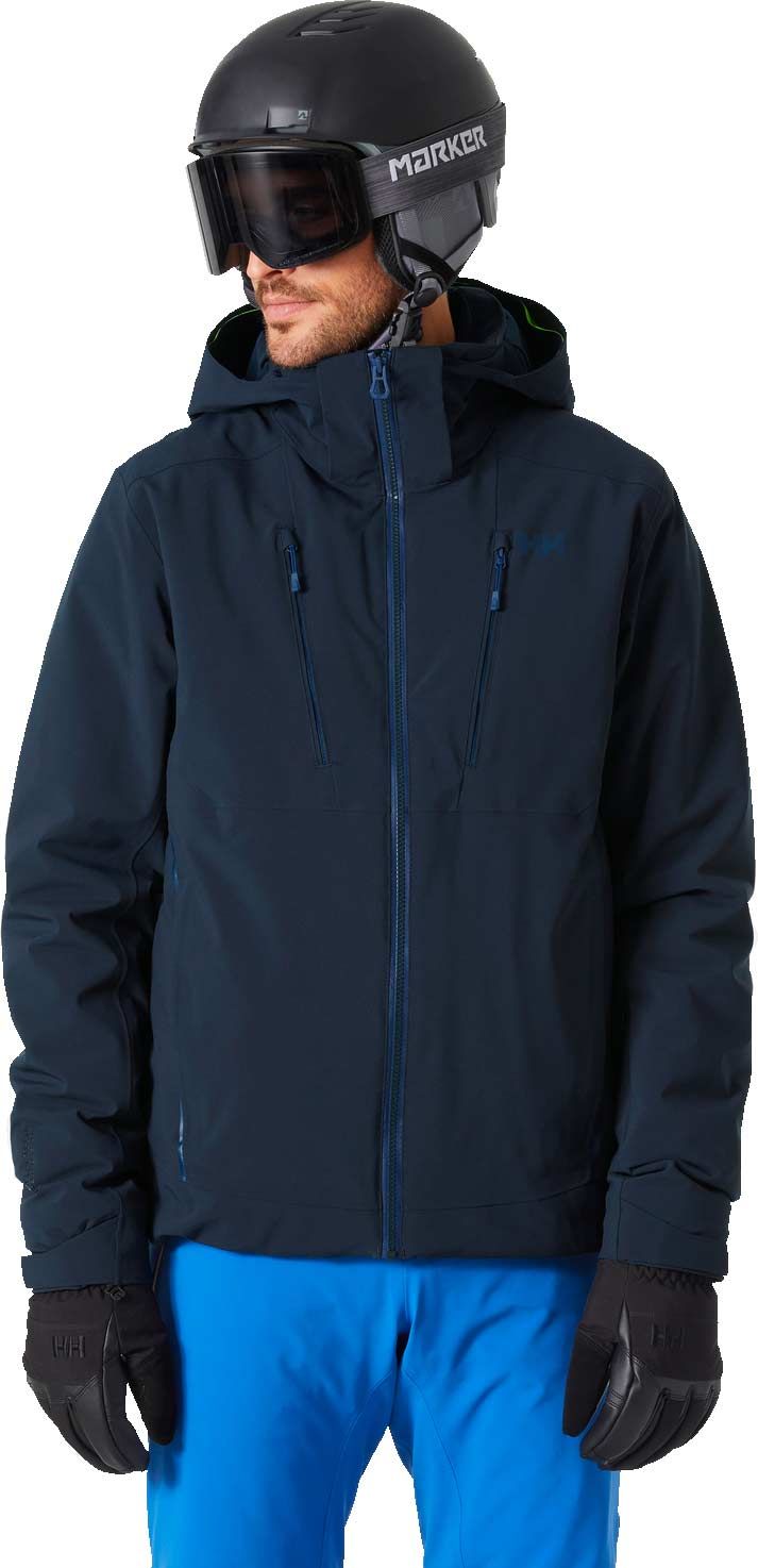 Veste de ski Helly Hansen Alpha 4.0 Jacket Navy homme, membrane HELLY TECH® Professional imper-respirante coupe-vent, isolation PrimaLoft® Black Eco, capuche casque, jupe pare-neige et poche Life Pocket™.