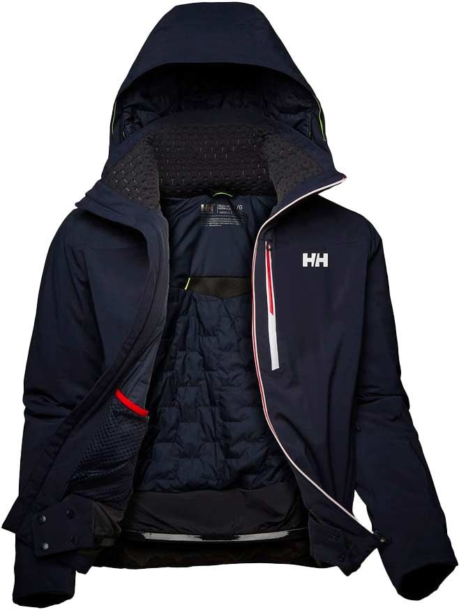 La veste de ski Helly Hansen Alpha Lifaloft Jacket pour homme combine membrane imper-respirante 2 couches, isolation LIFALOFT™ légère et chaude, tissu 4 directions, jupe pare-neige et système RECCO® pour sécurité et liberté sur piste ou hors-piste.