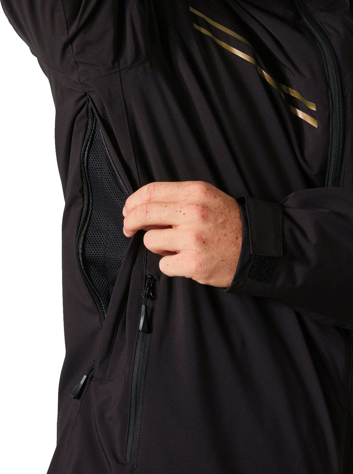 Des rangements fonctionnels : un emplacement dédié au forfait de ski, des poches chauffe-mains ainsi qu’une poche intérieure poitrine pour les objets indispensables.