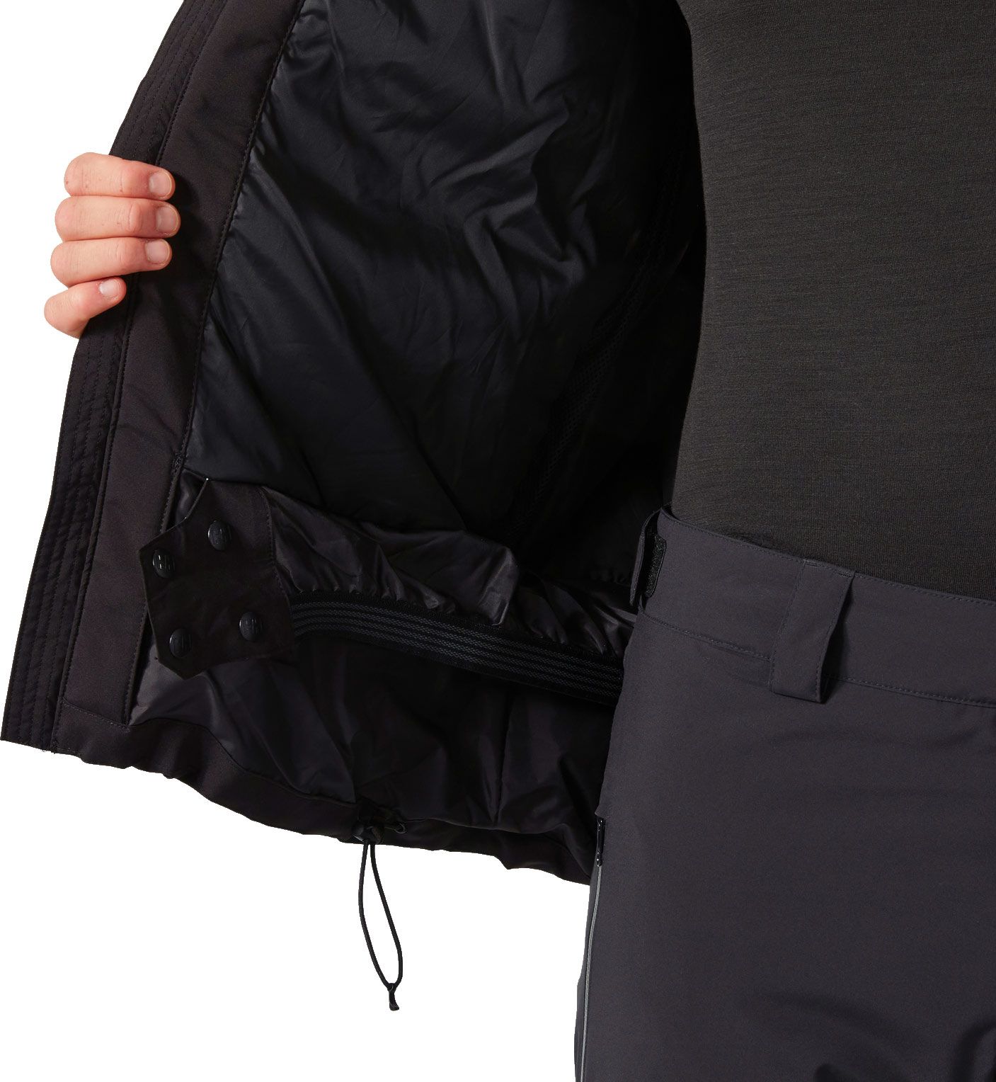 Une protection optimale est garantie par le col montant et l’arrière allongé, assurant une isolation parfaite aussi bien sur le télésiège qu’en poudreuse. L’ajustement se fait par la capuche conçue pour le port du casque et les poignets modulables, scellant ainsi l’étanchéité.