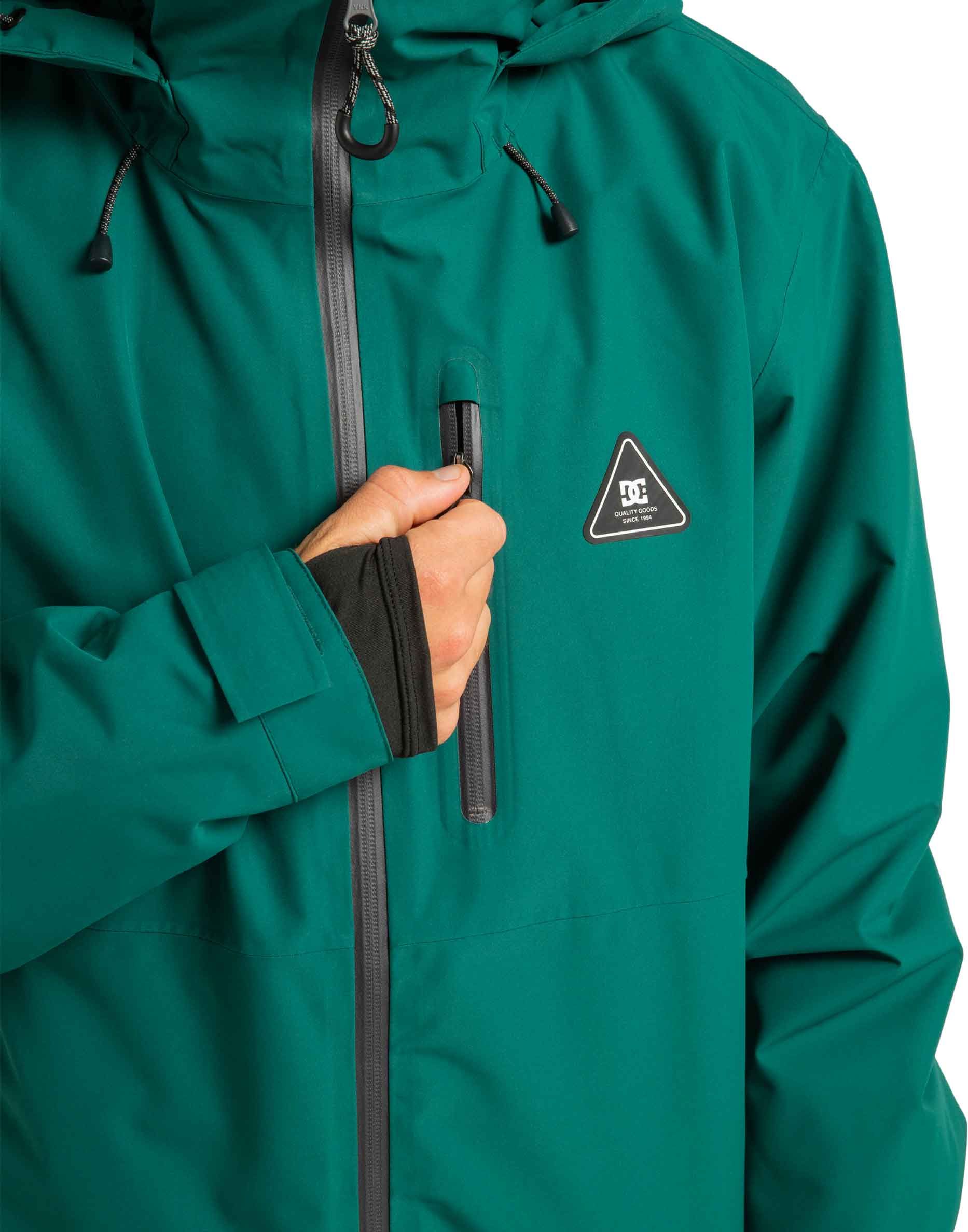 DC Shoes Basis 30K Deep Teal, veste de snowboard homme, tissu WEATHER DEFENSE 30 offrant 30 000 mm d’imperméabilité et 20 000 g de respirabilité, en polyester recyclé avec coutures collées, jupe pare-neige fixe et attache veste-pantalon.