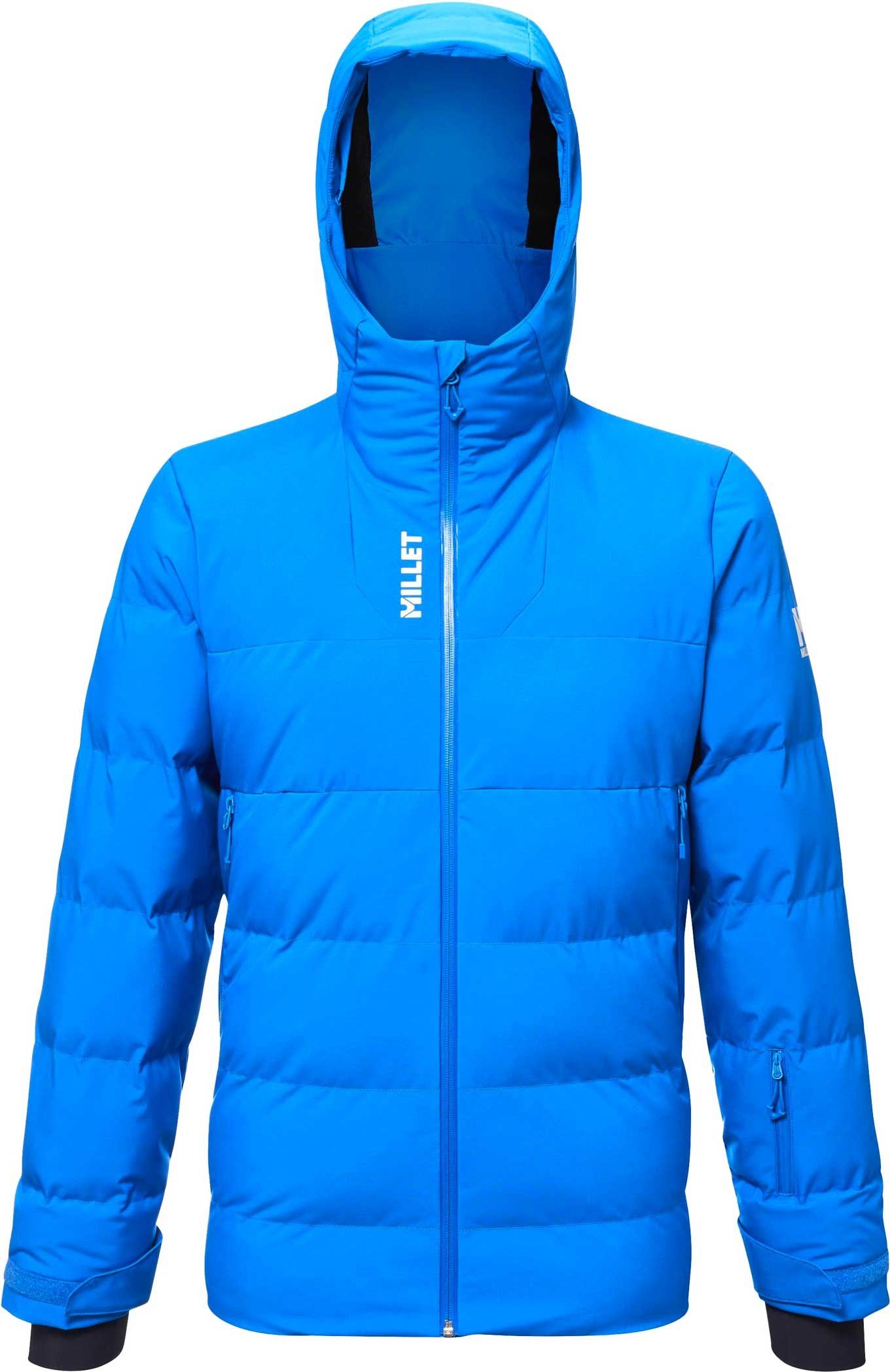 Veste ski Millet Brevent Peak Jkt Icon Blue homme : tissu DRYEDGE™ imperméable respirant stretch, coutures thermosoudées, doublure Repreve® recyclée, capuche ajustable, jupe pare-neige, ventilations latérales.