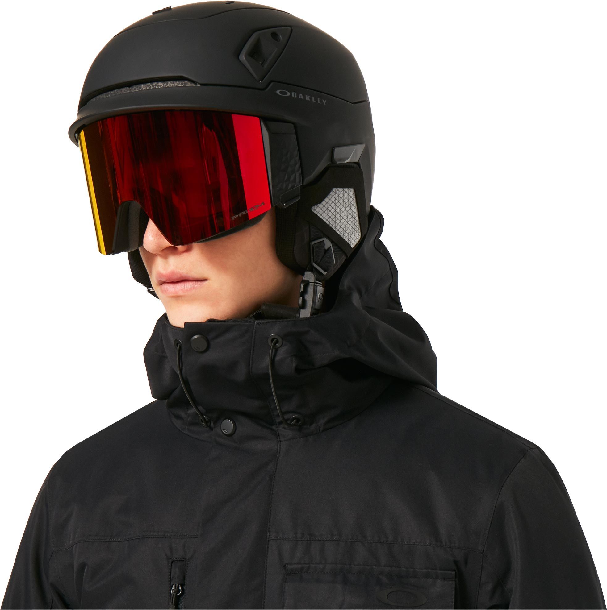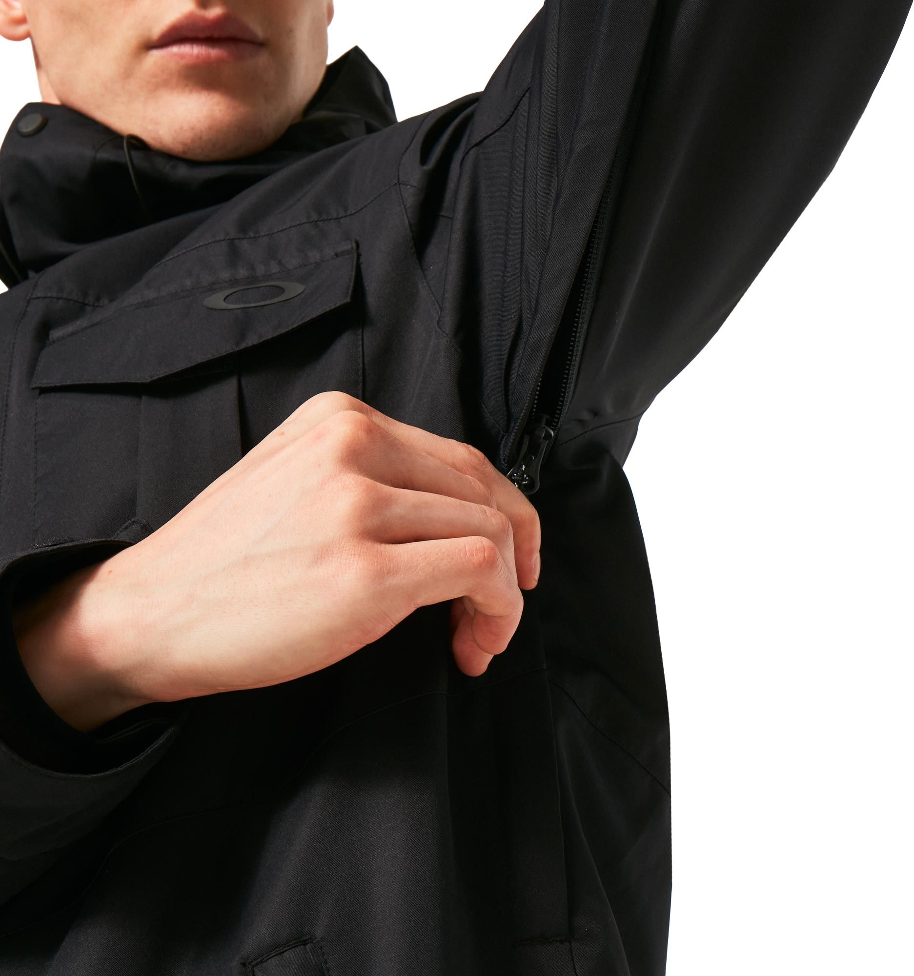 Veste de ski Oakley Core Divisional Rc Insulated Jacket Blackout imperméable 10K, respirante FNDry™, coutures collées, capuche ajustable, jupe pare-neige et ventilation sous les bras.