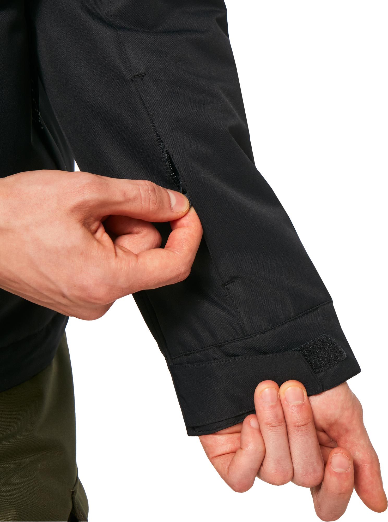 Du point de vue pratique, l’équipement comprend une capuche ajustable, plusieurs poches sécurisées ainsi qu’une jupe pare-neige. Des ouvertures de ventilation sont positionnées sous les bras pour une aération rapide, tandis que les poignets se règlent par Velcro® afin d’obtenir un ajustement optimal.