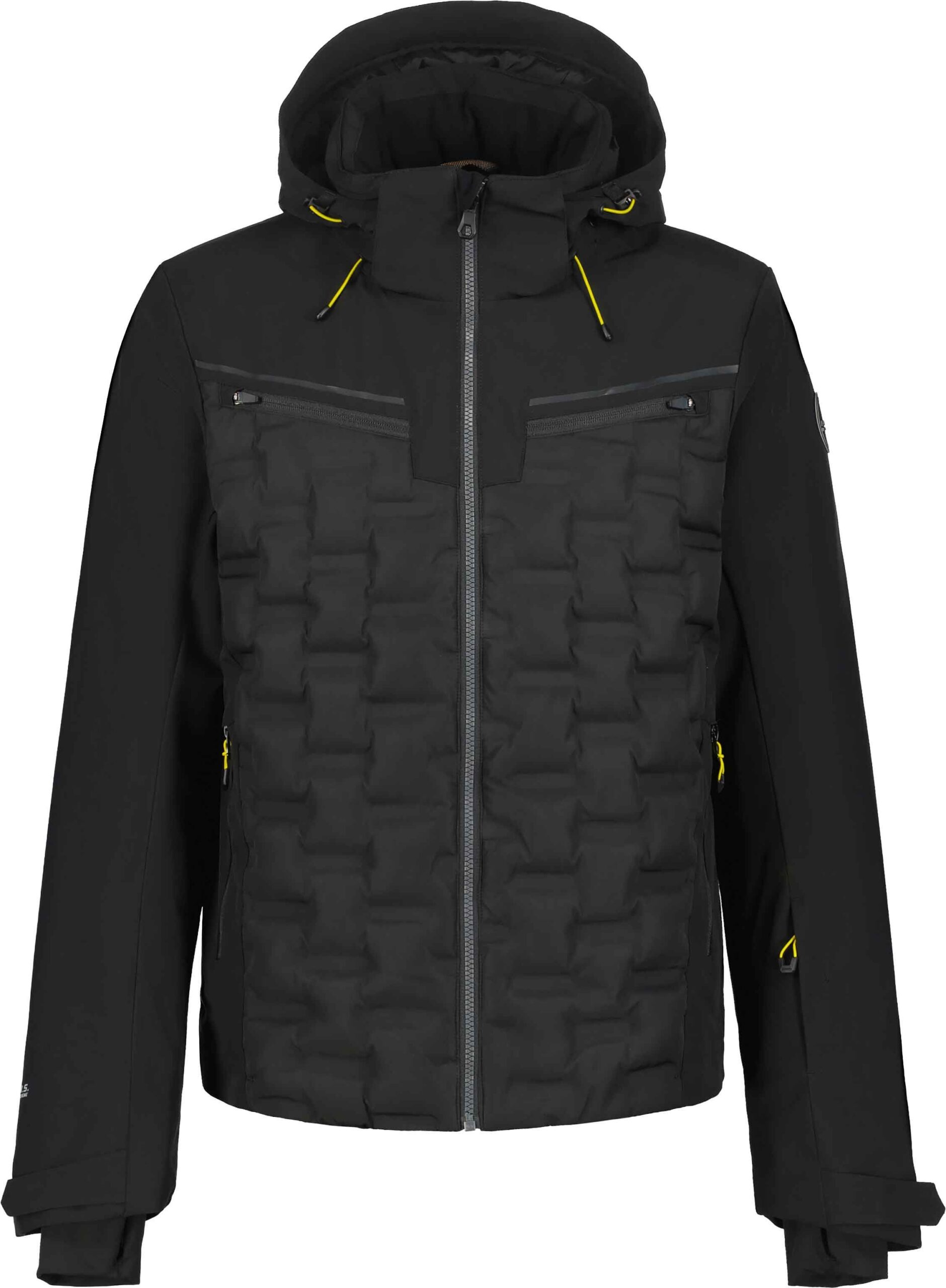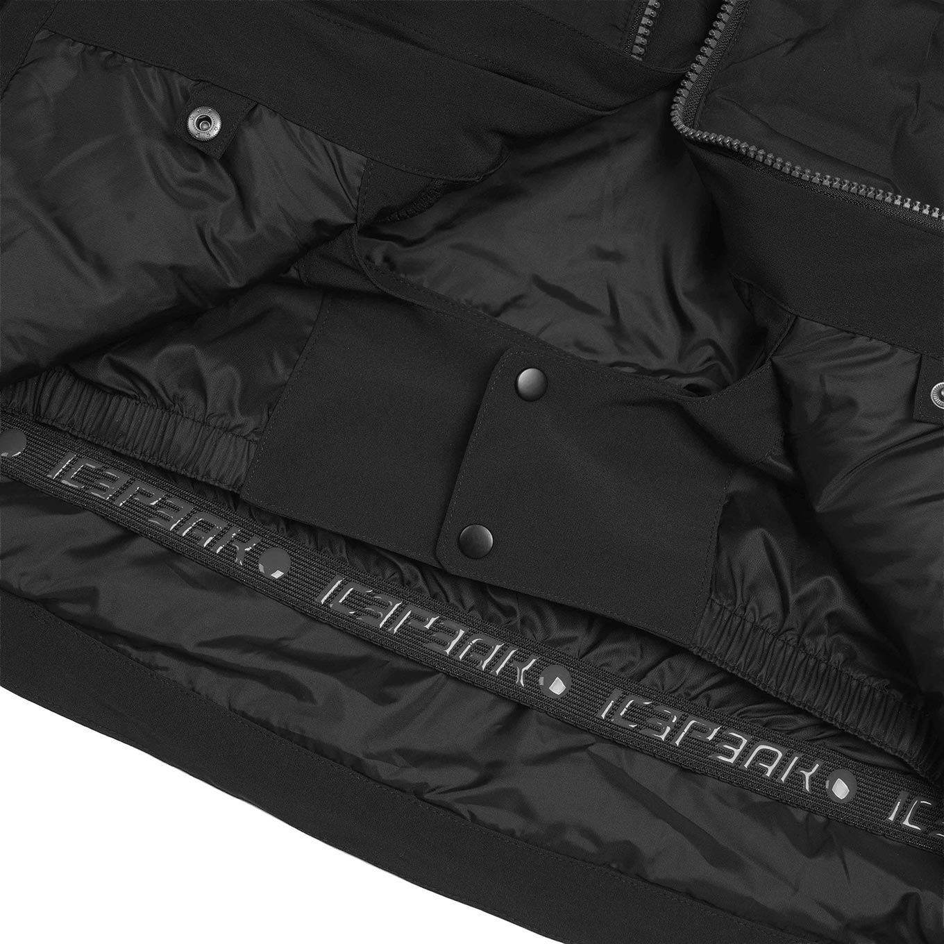Veste de ski homme Emmet Noir d’Icepeak, 2 couches avec membrane imper-respirante, coutures étanches et jupe pare-neige : chaleur légère et liberté de mouvement sur les pistes.