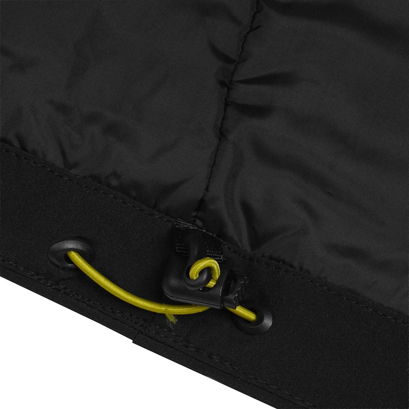 Une jupe pare-neige munie de bandes siliconées assure un maintien optimal. La capuche, amovible et ajustable, s’adapte à l’activité pratiquée pour une protection personnalisée.