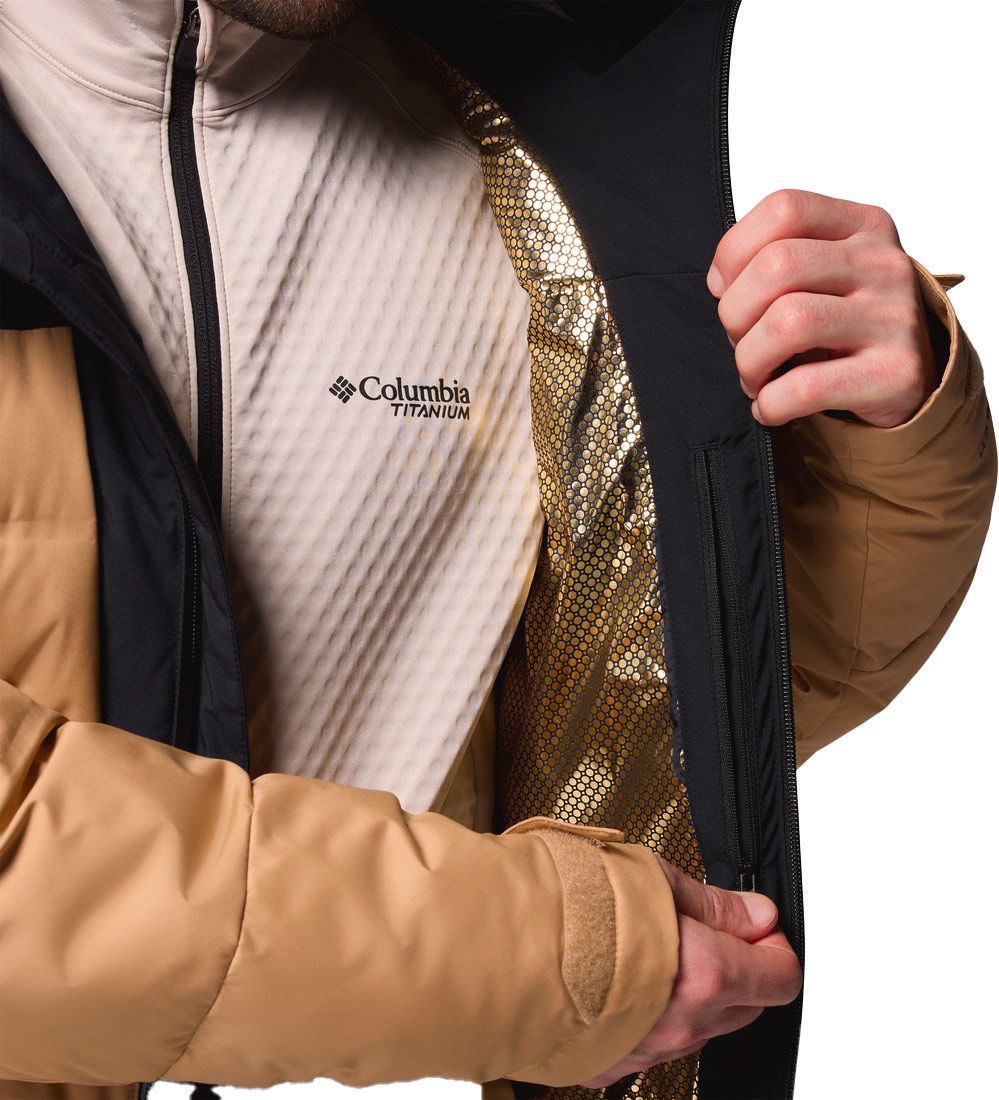 La veste de ski Columbia Glacier Ridge Down Jacket Canoe Black pour homme combine membrane Omni-Tech™ imperméable, isolation thermique légère et doublure Omni-Heat™ Infinity pour une protection complète sur les pistes.