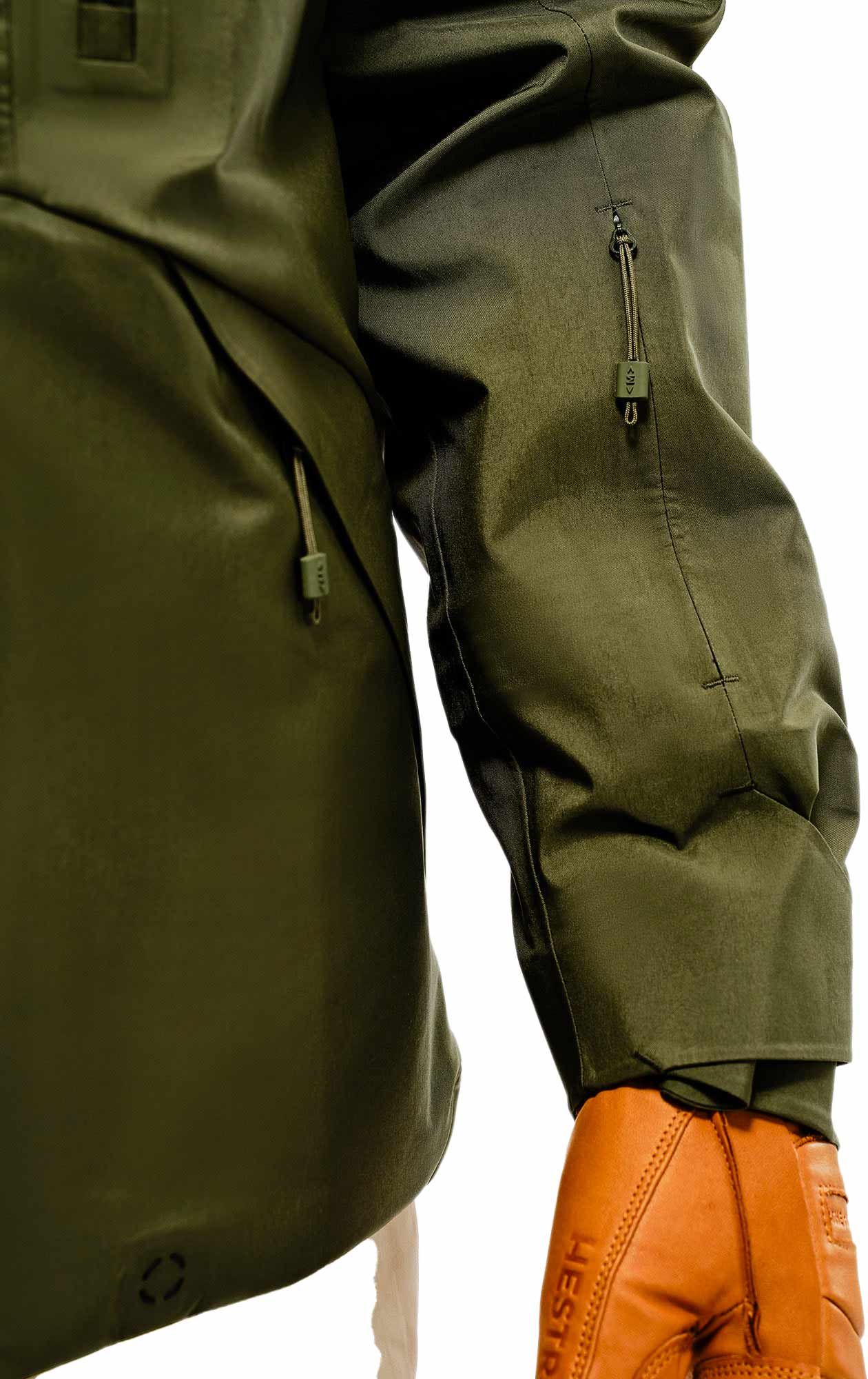 Structure légère mais robuste, adaptée aux environnements alpins exigeants. Coutures entièrement étanchées, dos doublé flanelle doux pour le confort en port prolongé. Coupe ergonomique avec articulation bras et coudes pour une amplitude de mouvement complète.