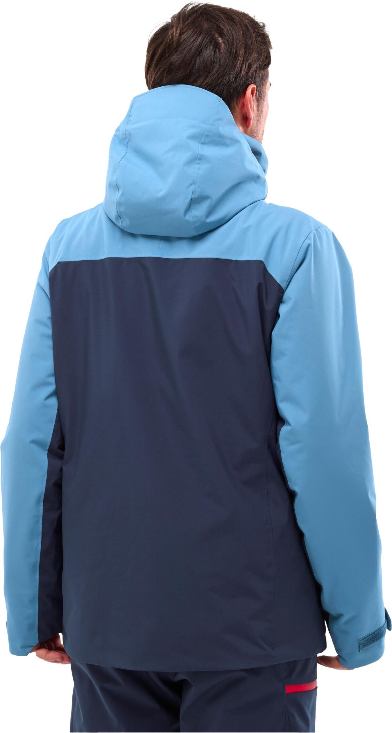 Une jupe pare-neige, maintenue par boutons-pression et munie d’un élastique anti-dérapant, assure l’étanchéité périphérique autour de la taille pour empêcher toute intrusion de neige poudreuse. Des renforts intérieurs Cordura® positionnés aux coudes renforcent la résistance à l’abrasion.