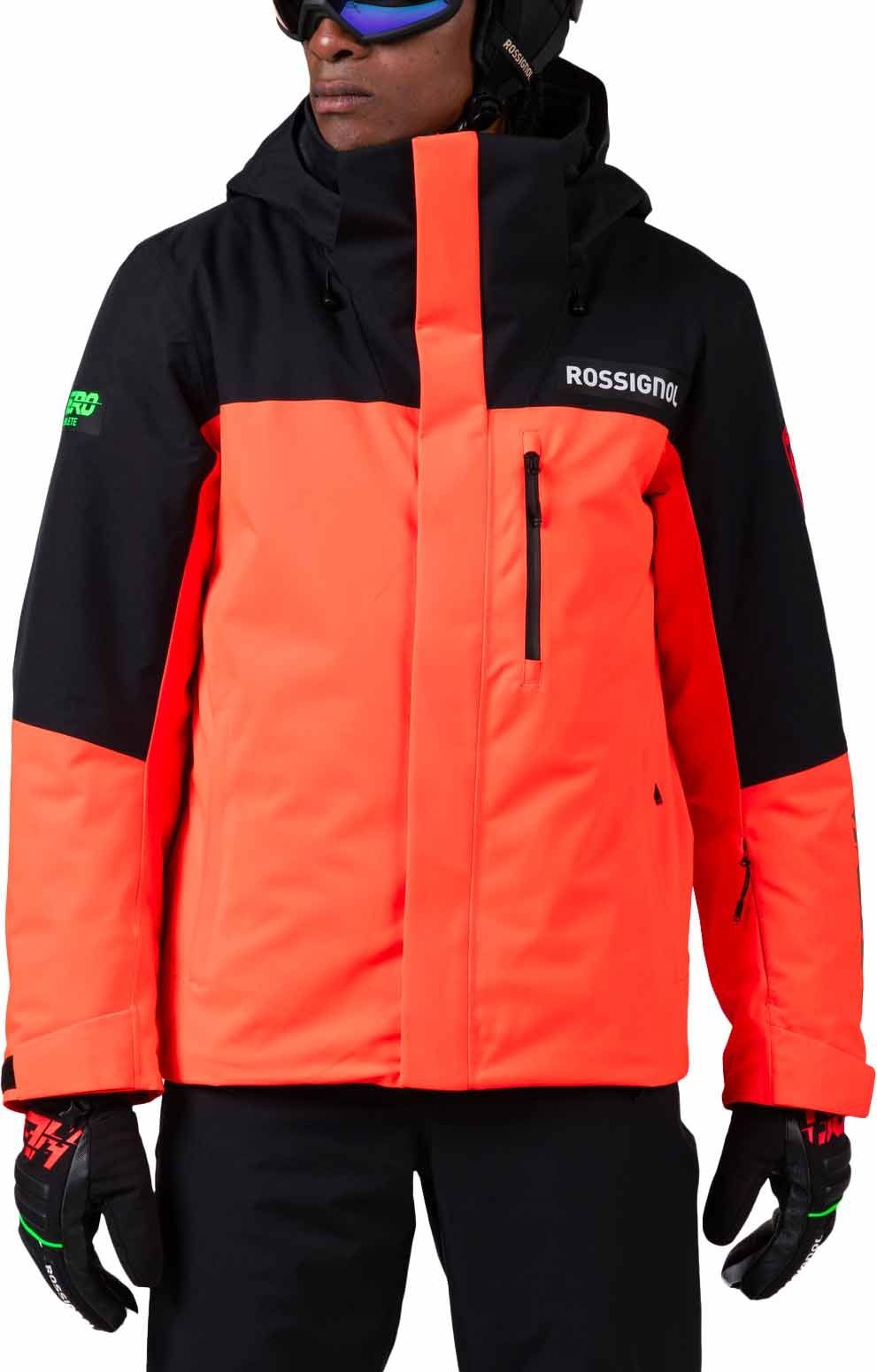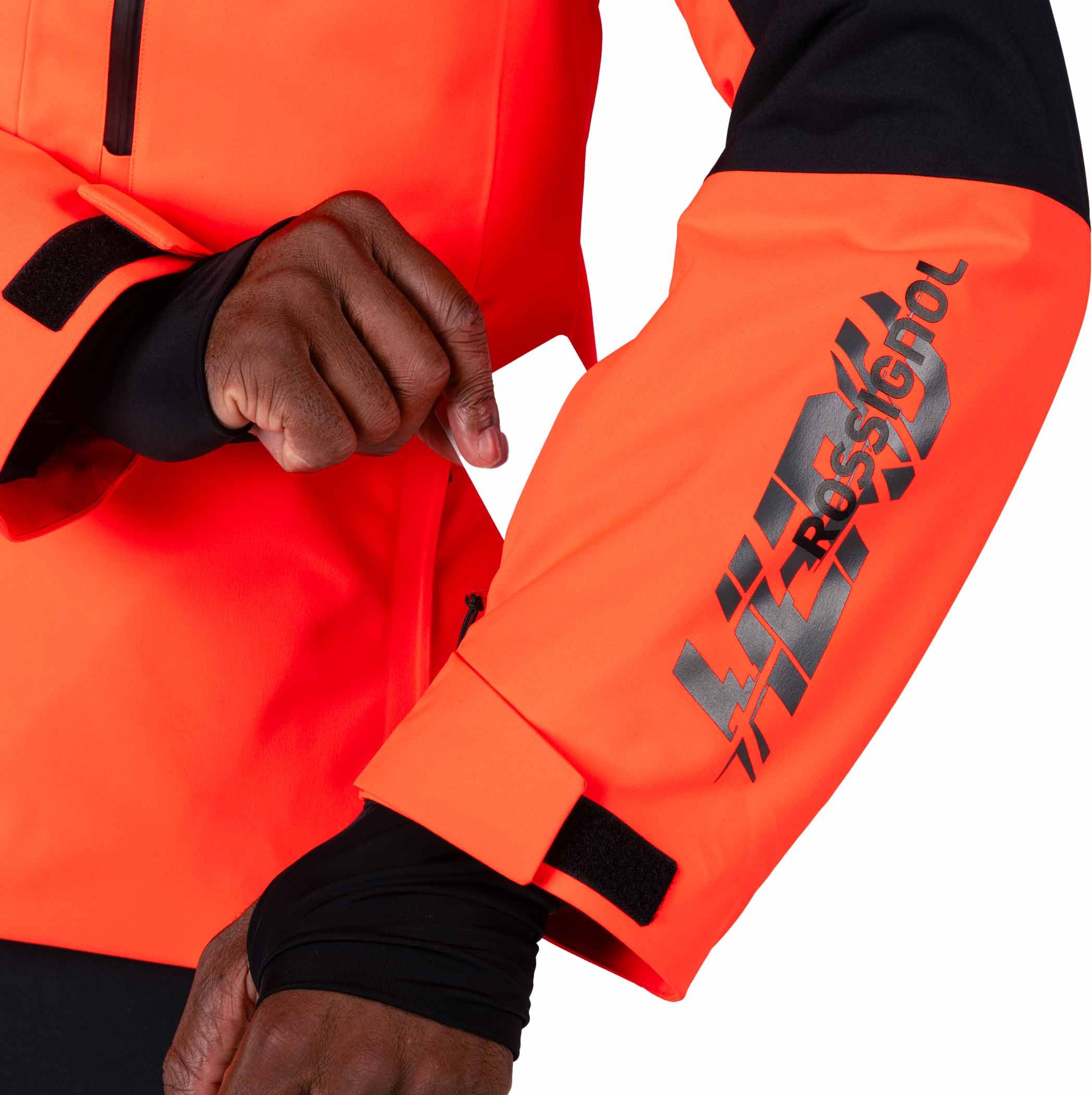 La veste de ski Rossignol Hero Velika Insulated Jacket Neon Red pour homme associe isolation PrimaLoft® Black 100 % recyclée, membrane imperméable respirante et jupe pare-neige pour un confort optimal sur l’All-Mountain.