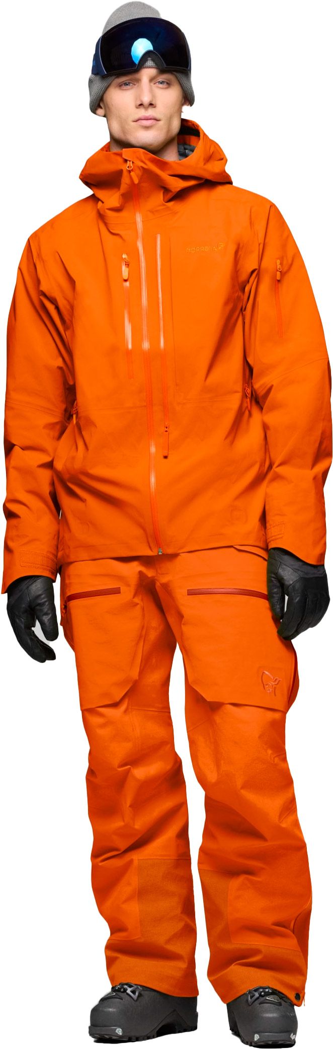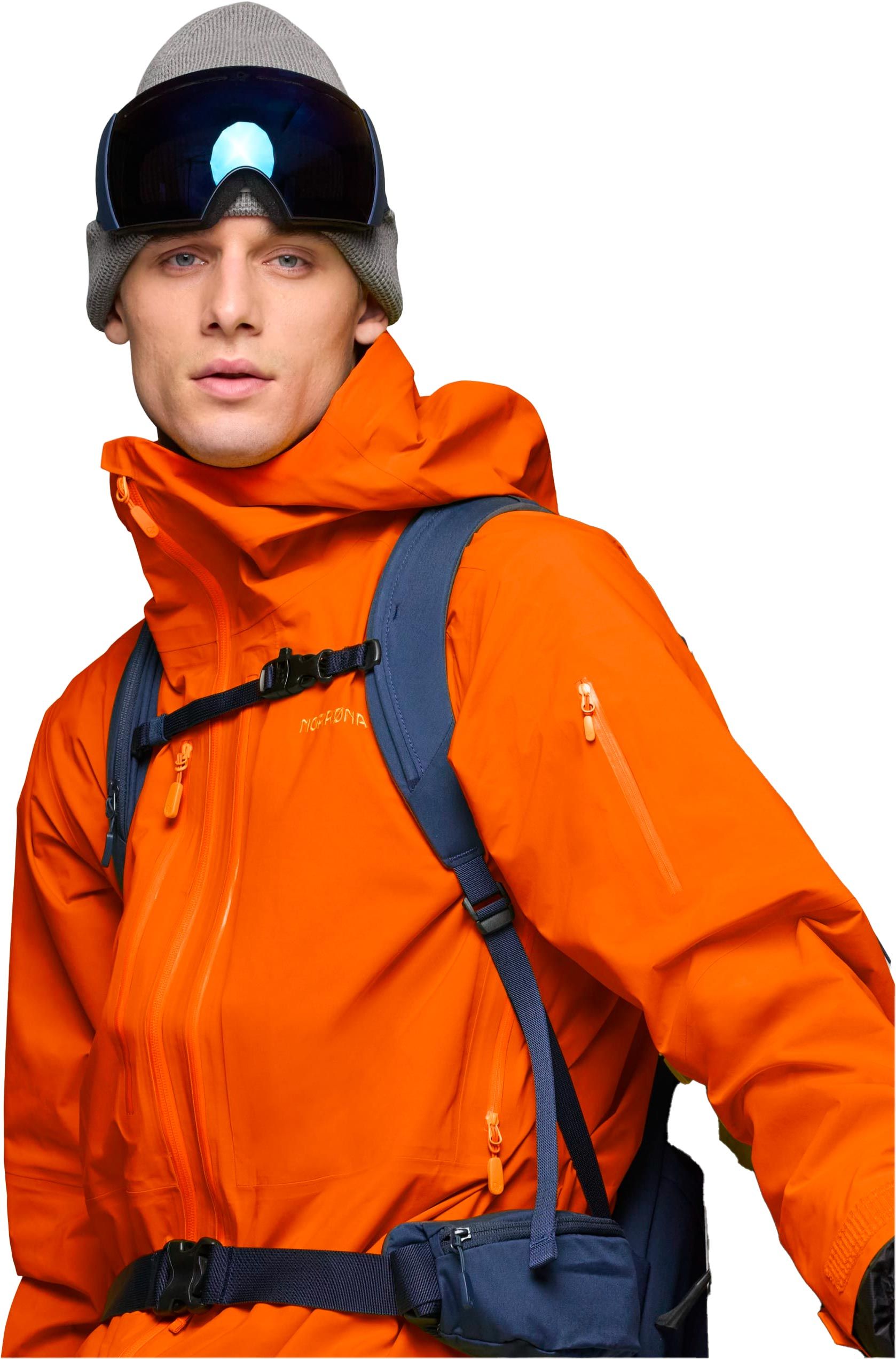 La veste Norrona Lofoten Gore-Tex Pro Jacket Gold Flame homme conjugue membrane GORE-TEX PRO imperméable, respirabilité active et coupe-vent totale pour l’alpinisme extrême.