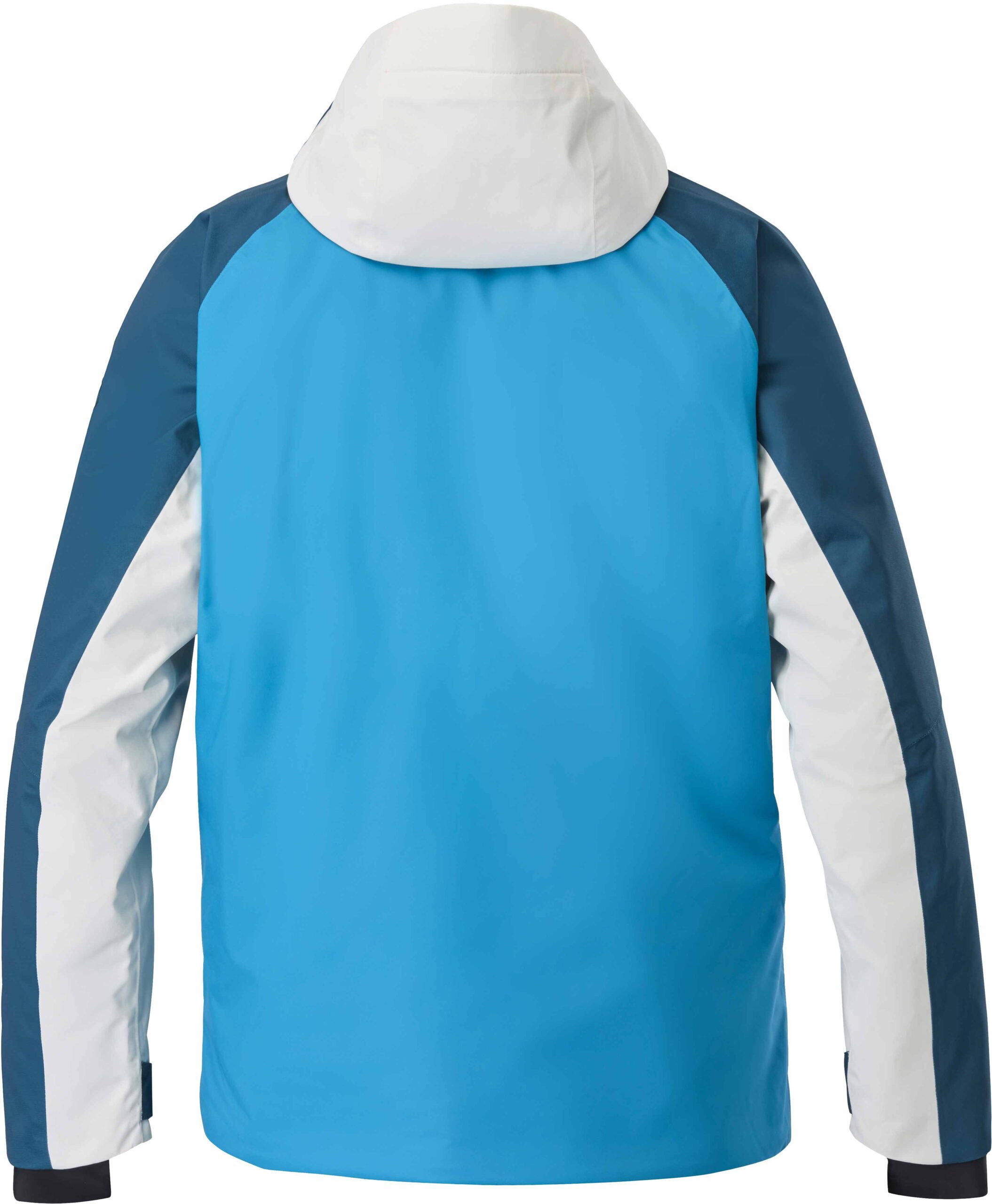 Veste isolante EIDER Arias 2L Insulated Jkt Azul homme, coupe articulée, membrane Defender imperméable-respirante, isolation polyester recyclé ciblée, capuche réglable, poches skipass et masque, manchons stretch pare-neige.