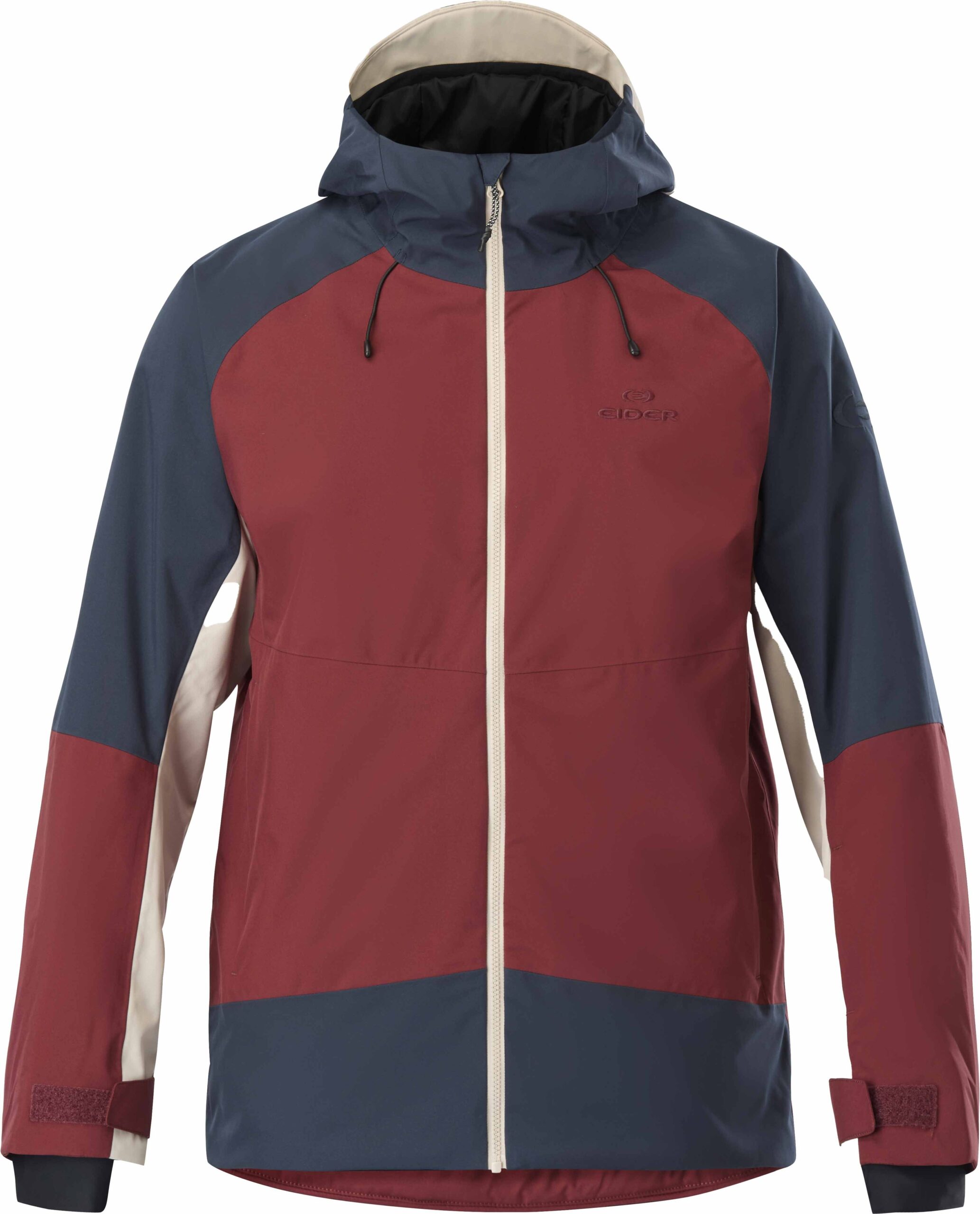 Veste isolante EIDER Arias 2L Insulated Jkt Carmin homme, membrane Defender imperméable-respirante, isolation polyester recyclé stratégique, coupe articulée, capuche réglable et jupe pare-neige.