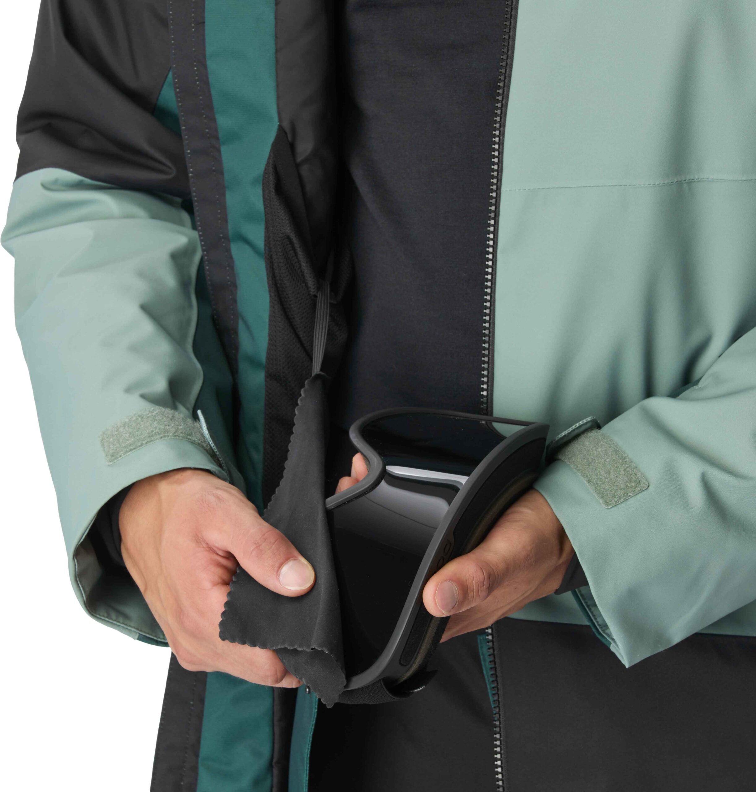 Une isolation en polyester recyclé est mise en œuvre : plus épaisse au niveau du torse, elle se fait plus légère sur les bras et la capuche pour un apport de chaleur ciblé sans restriction de mouvements. Les coudes bénéficient d’une coupe articulée qui suit naturellement les gestes et autorise une amplitude maximale dans l’enchaînement des virages.