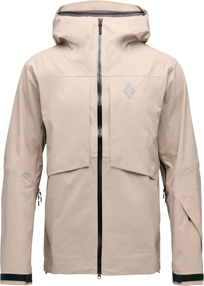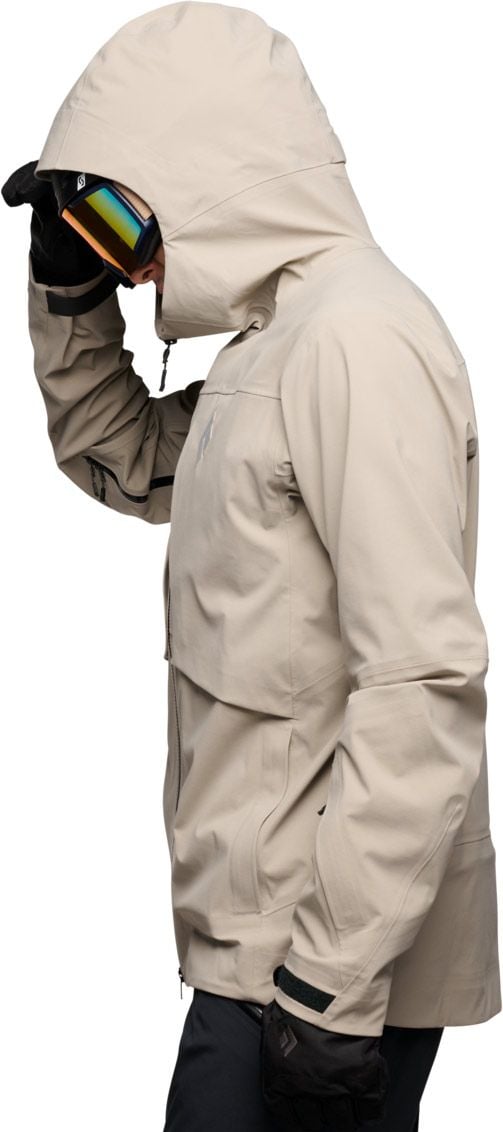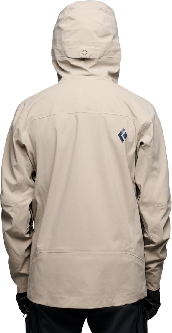 La veste technique Black Diamond Factor Shell Moonstone pour homme conjugue membrane BD.dry™ imperméable-respirante, tissu stretch et capuche casque-compatible pour des sorties poudreuse sèches et libres.