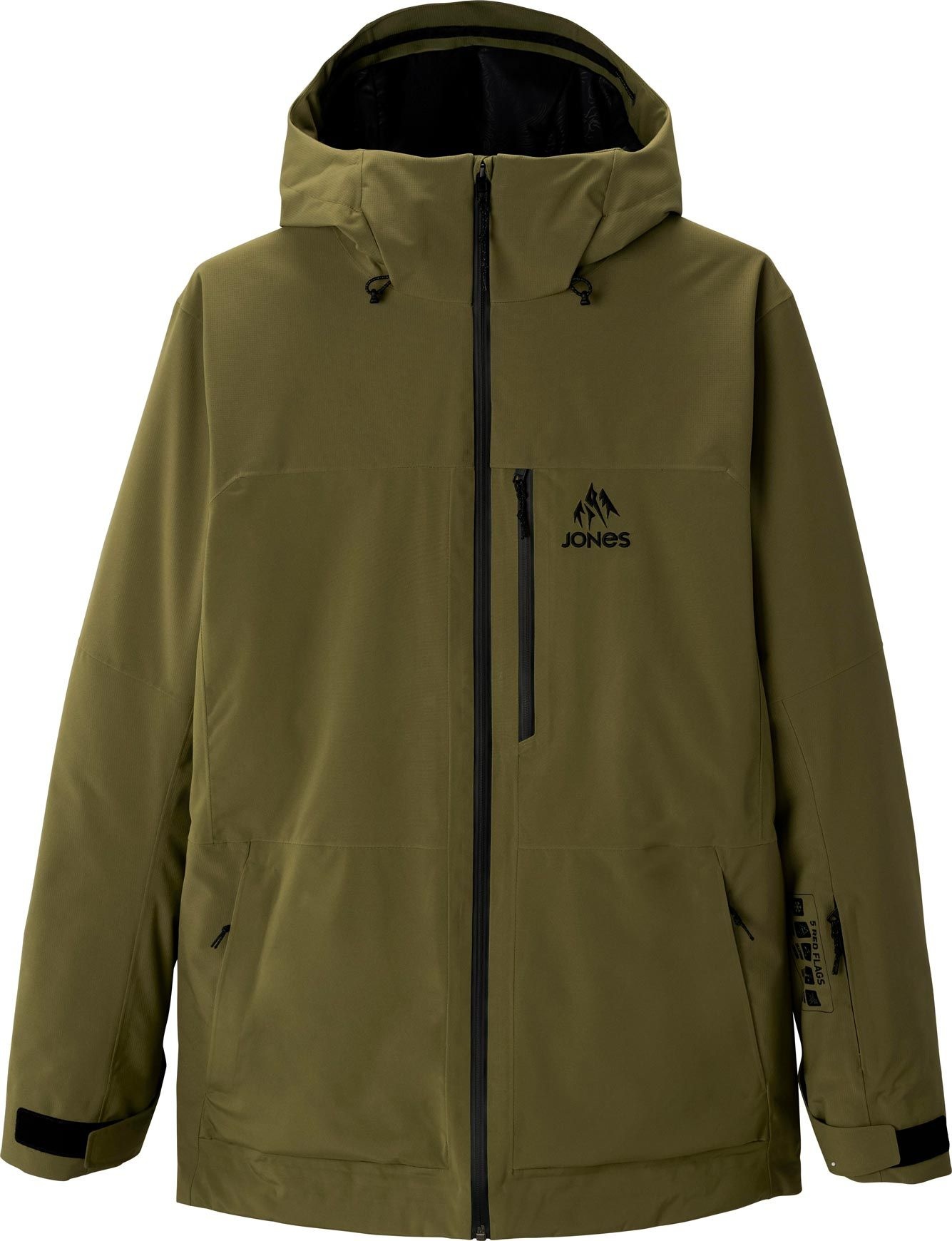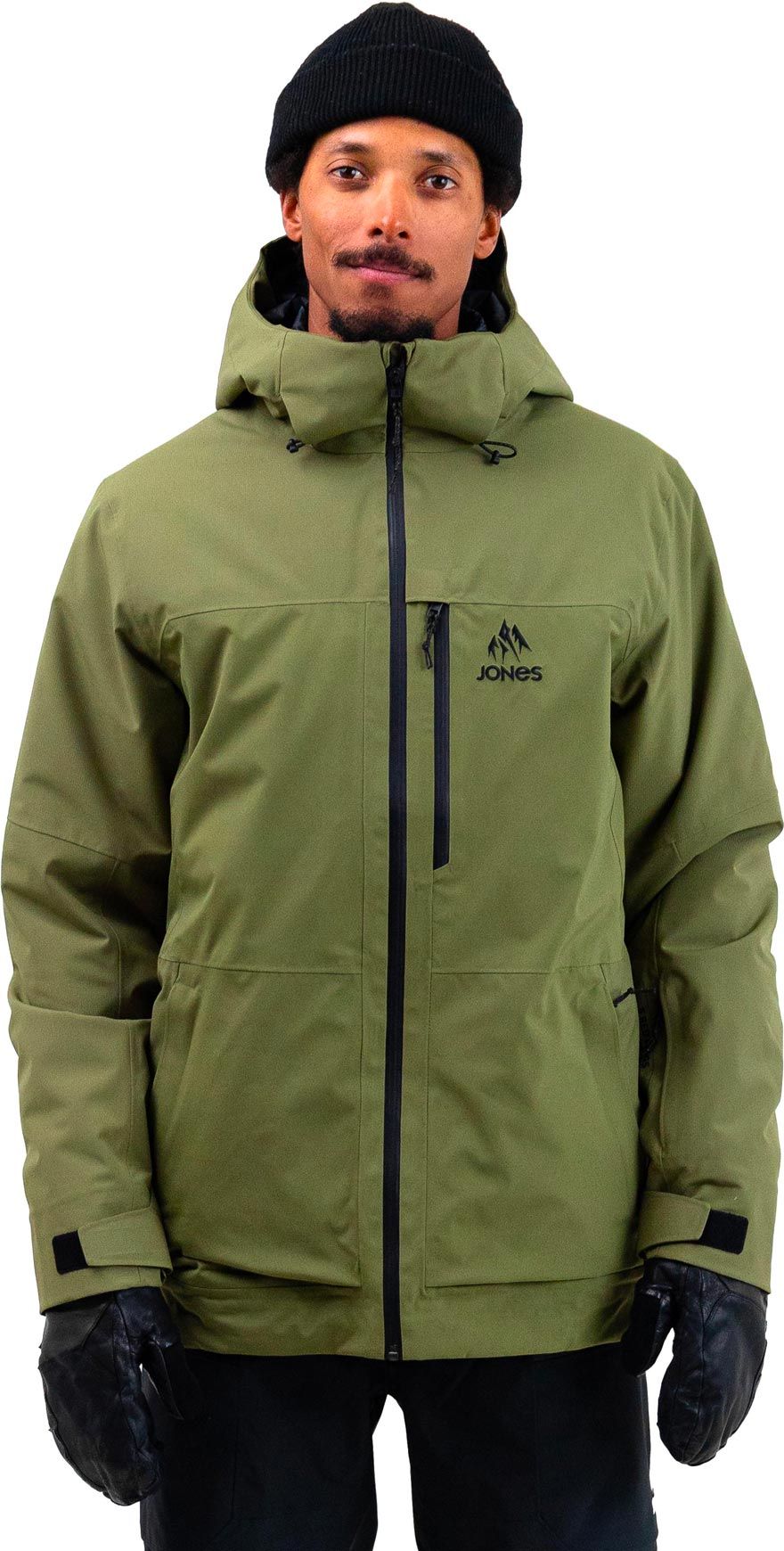 Parka de ski/snow Jones MTN Surf Recycled Parka Moss Green homme : coupe décontractée, membrane 2 couches imper-respirante, coutures étanches et isolation PrimaLoft® PURE™ pour chaleur légère, liberté de mouvement et ventilation sous les bras.