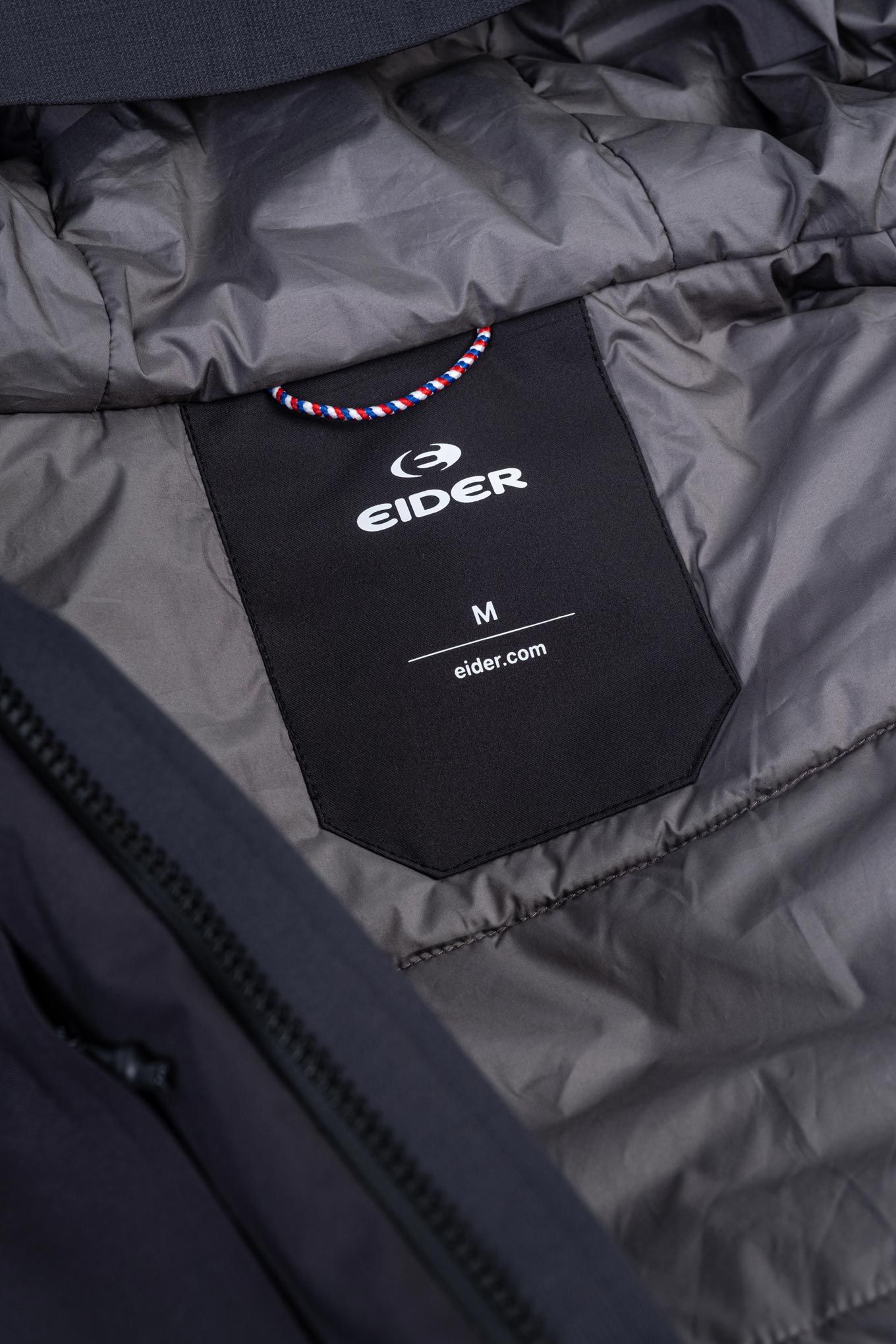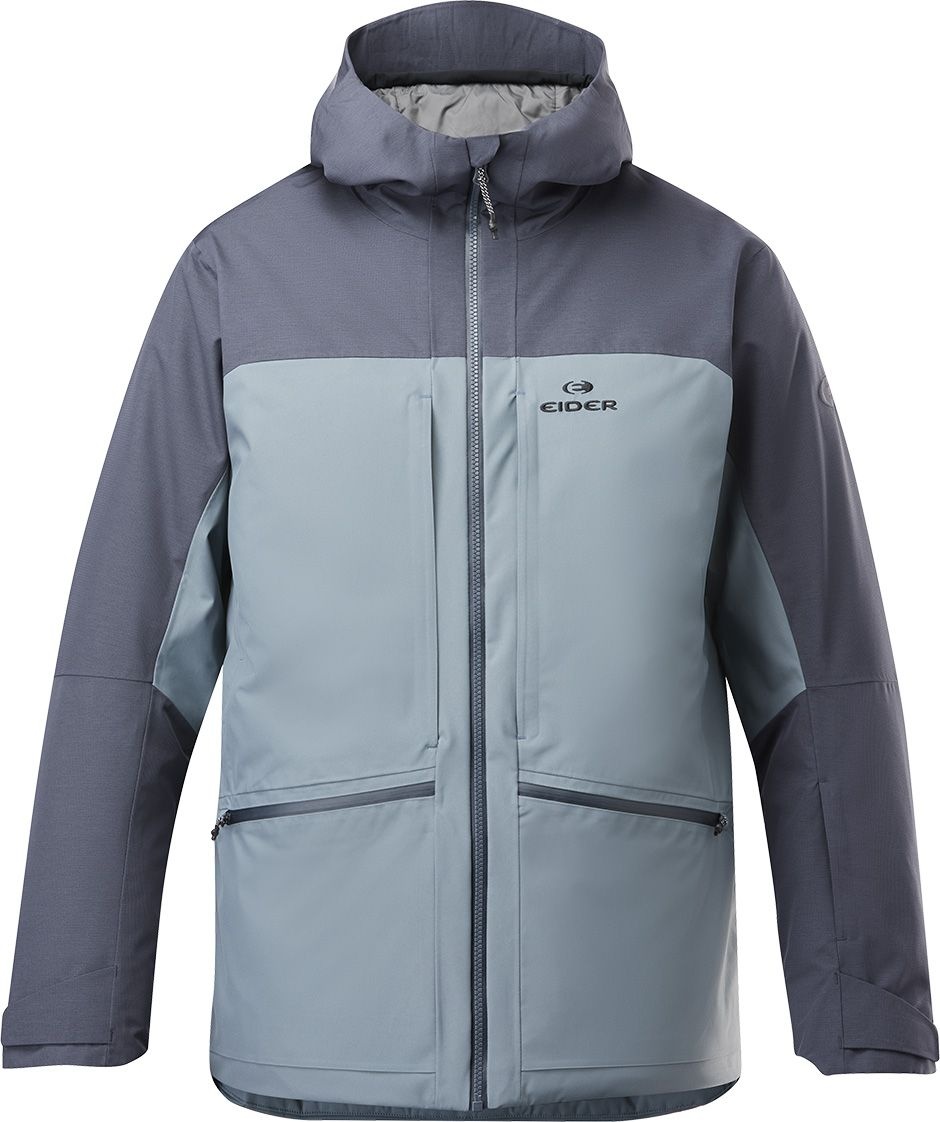 Veste ski EIDER La Saulire 2L Insulated Stretch Jkt Slate, imperméable DEFENDER, isolation synthétique stratégique, coutures stretch, capuche casque, jupe pare-neige.