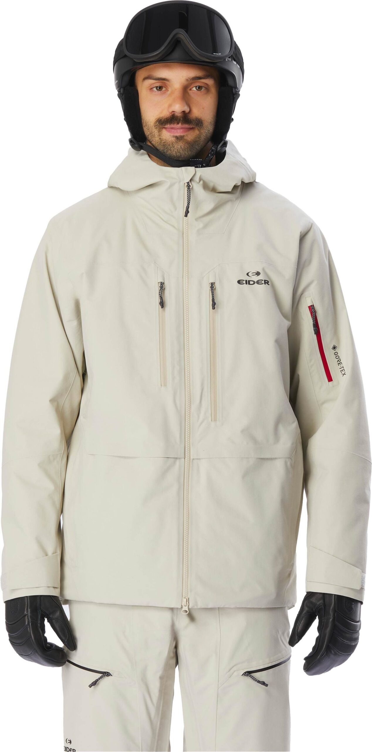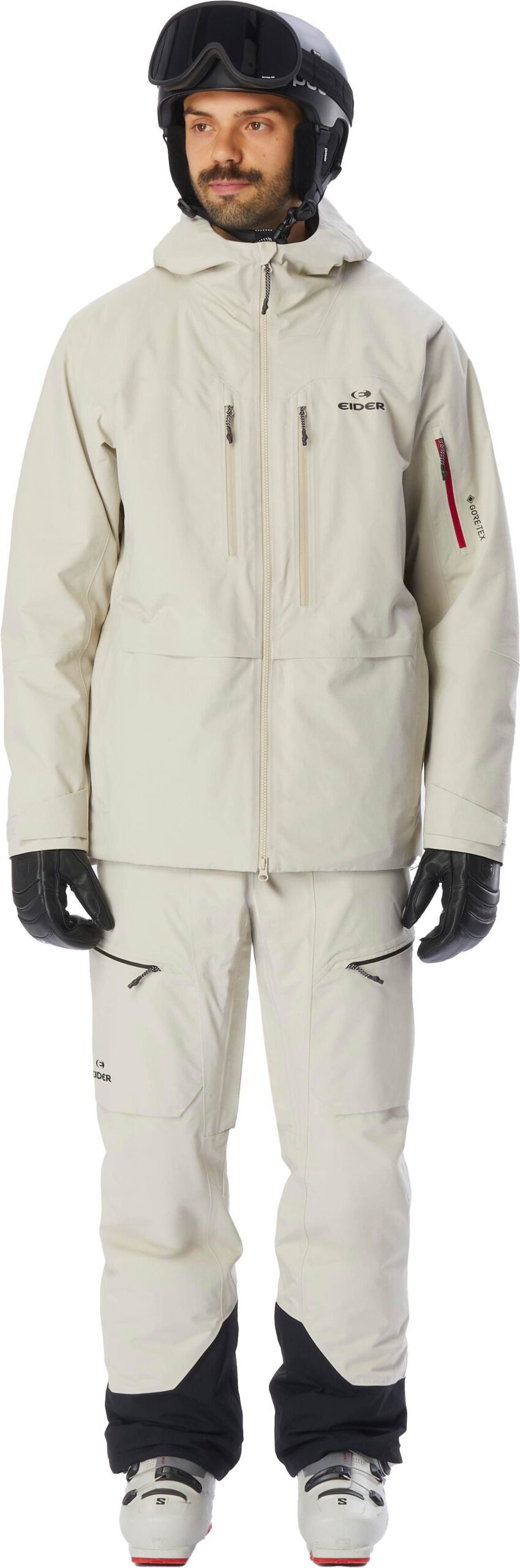 Veste isolante EIDER Torraz 2L Gore-Tex Insulated Jkt Wild Greige homme, coupe-vent et imperméable, chaleur ciblée en polyester recyclé, capuche casque, jupe pare-neige, ventilation active.