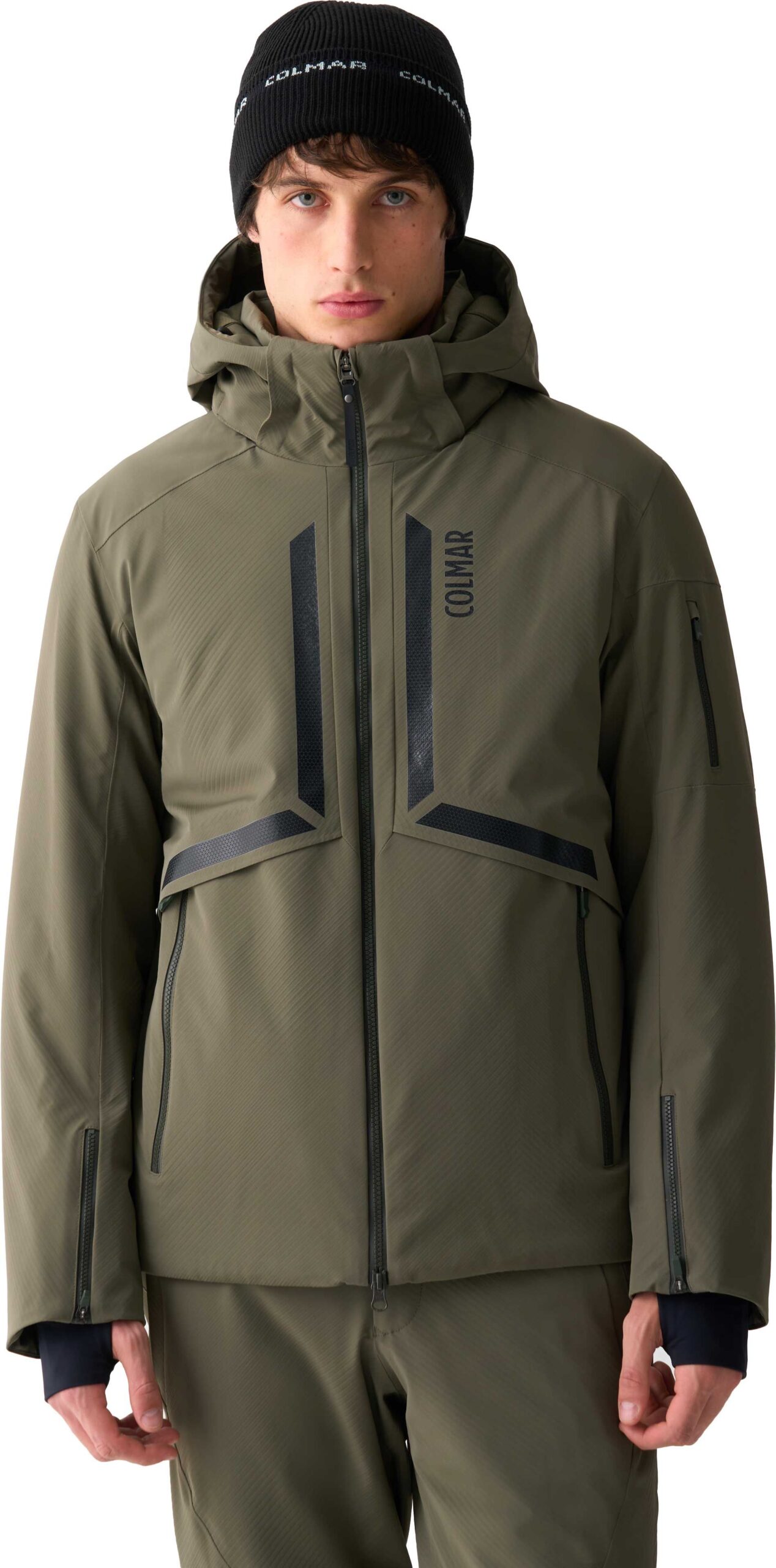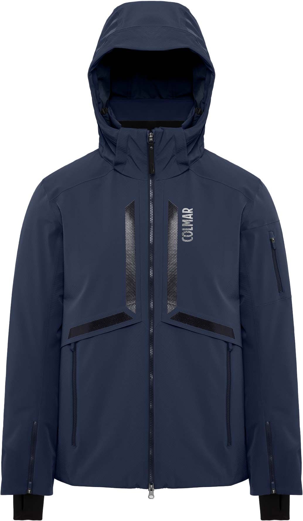 Veste de ski Colmar Men Ski Jacket Navy Blue pour homme, en nylon recyclé stretch 4 directions, imperméable et respirante, avec rembourrage Ecosoft 85 % recyclé, jupe pare-neige, ventilation, poche cargo arrière et technologie RECCO®.