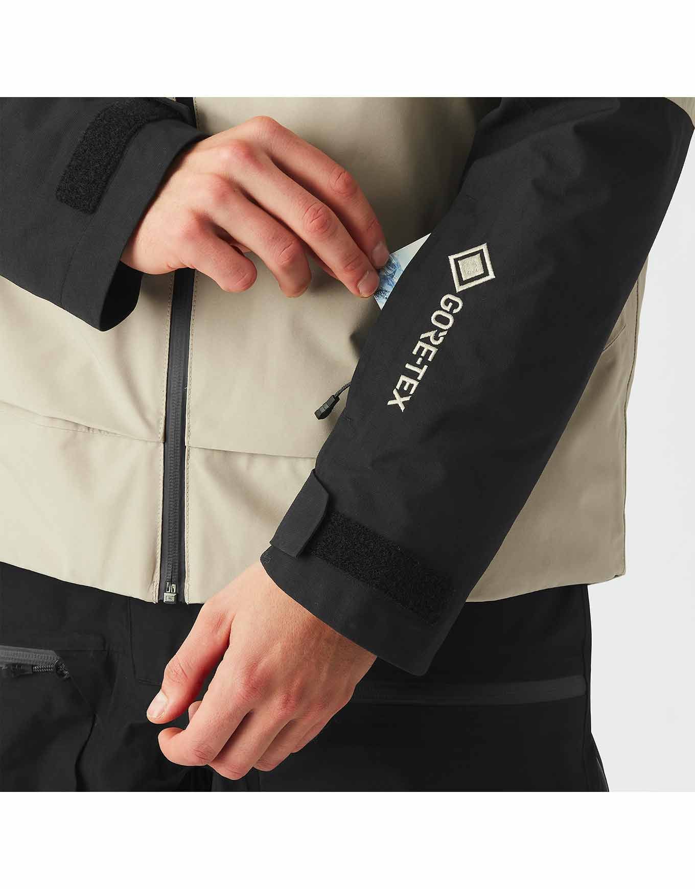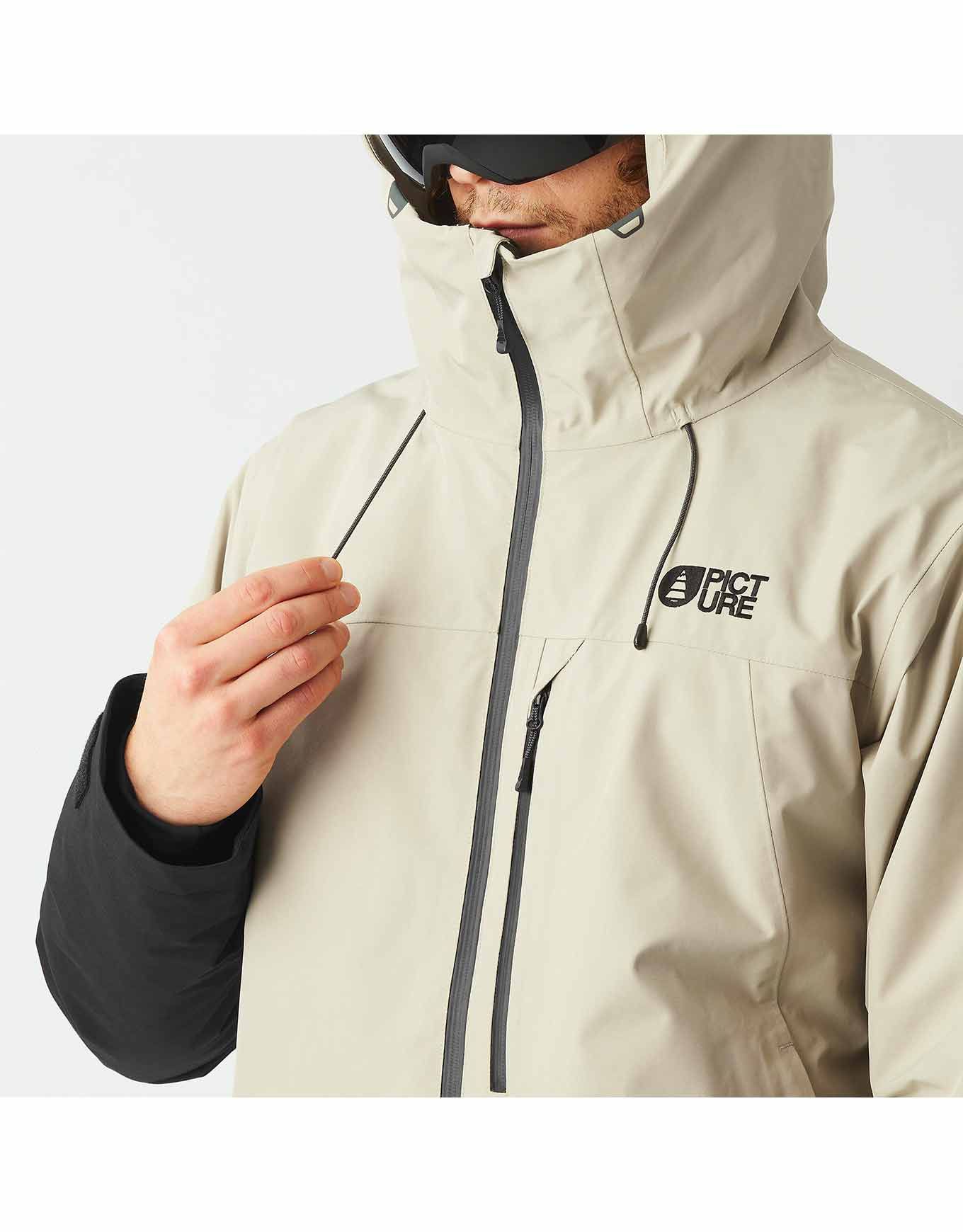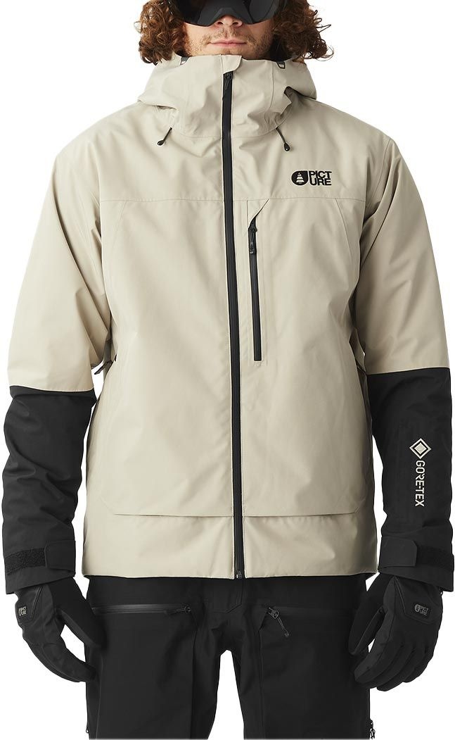 Veste Picture Organic Clothing Merepi M Jkt Pure Cashmere homme en GORE-TEX 2 couches 100 % polyester recyclé, 80 g d’isolation, coutures étanchées, capuche 3 points, jupe pare-neige et ventilation sous les bras pour les journées de ski.