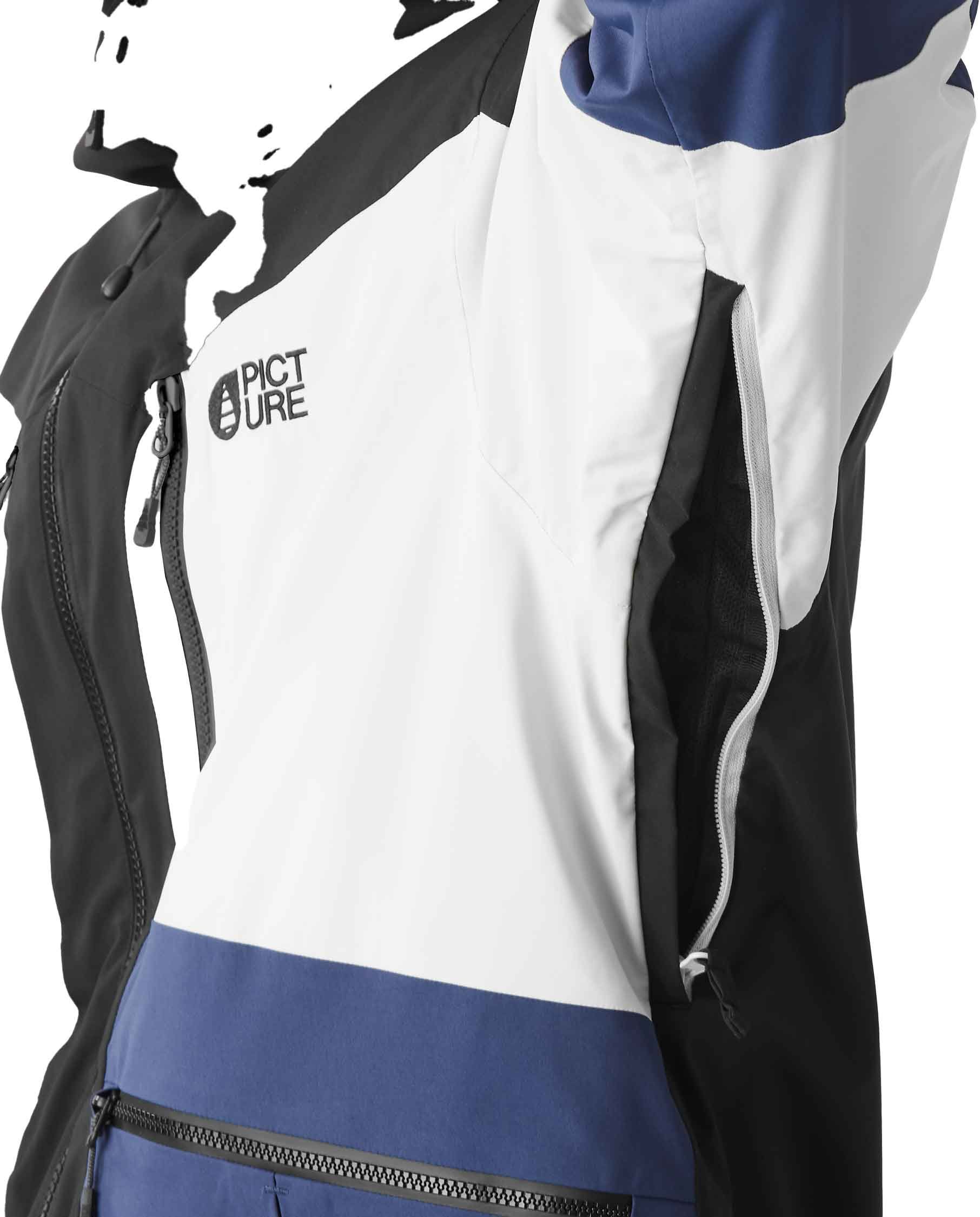 Veste de ski Picture Organic Clothing Naikoon Vapor Grey homme, 2 couches, membrane Dryplay 20K/20K, chaude, respirante et imperméable. Capuche, poignets et jupe pare-neige réglables, ventilations sous les bras, poches zippées, coupe droite dos long.