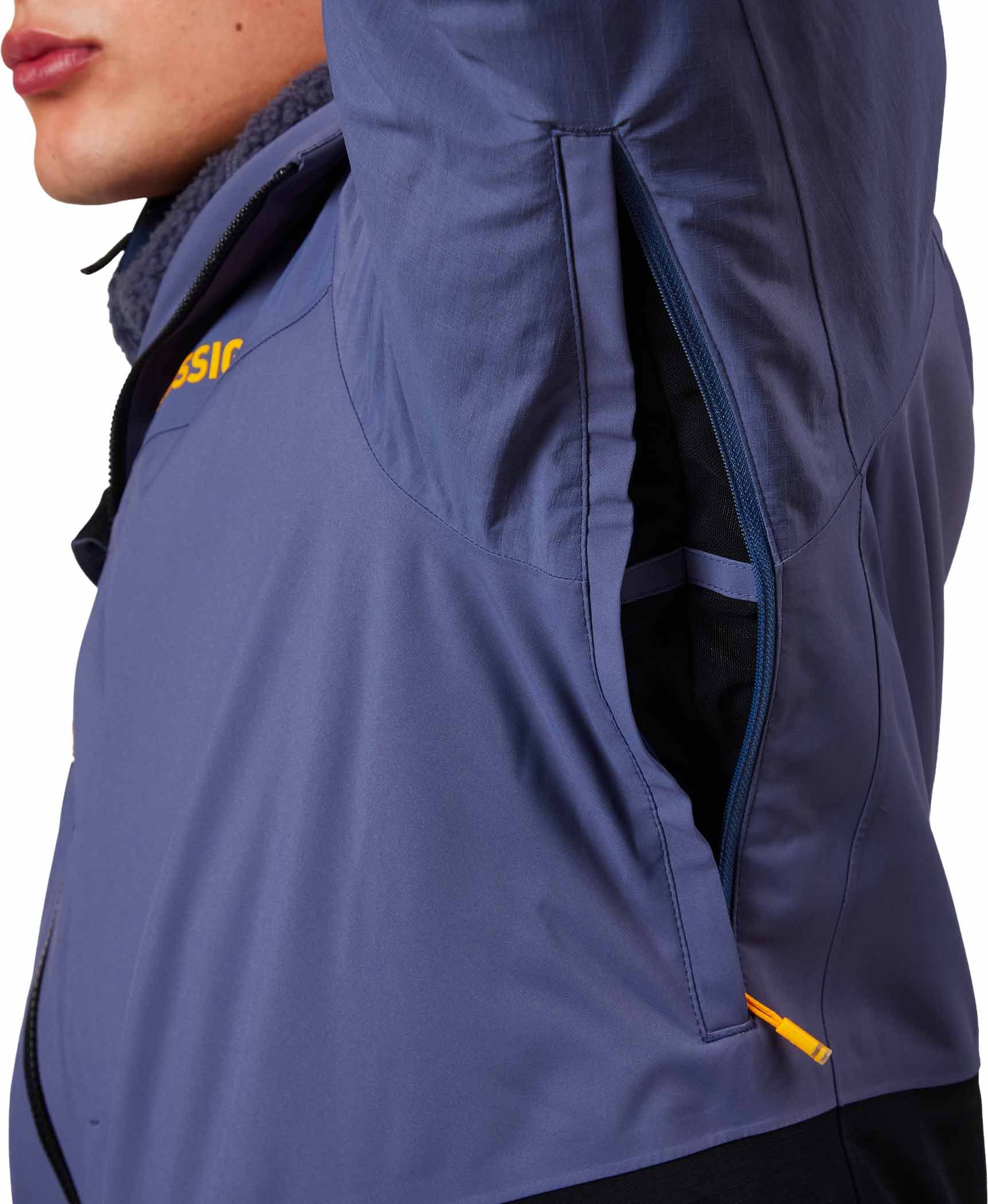 - Des aérations zippées situées sous les bras permettent un ajustement continu de la température corporelle.