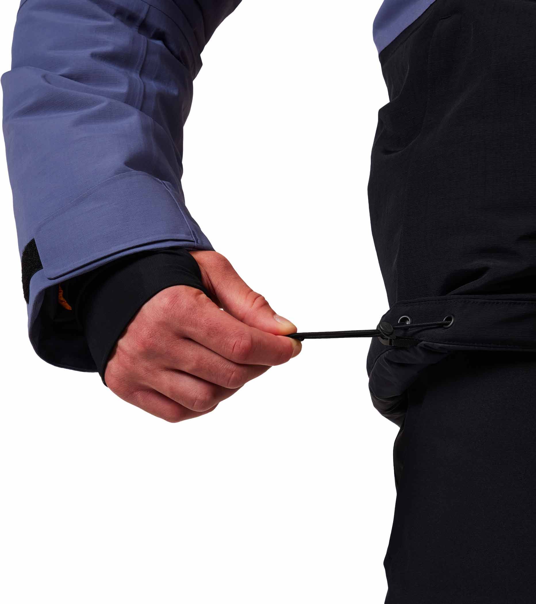 - Une membrane imperméable et respirante couplée à des coutures totalement étanches constitue une protection efficace contre la pluie, la neige et le vent.