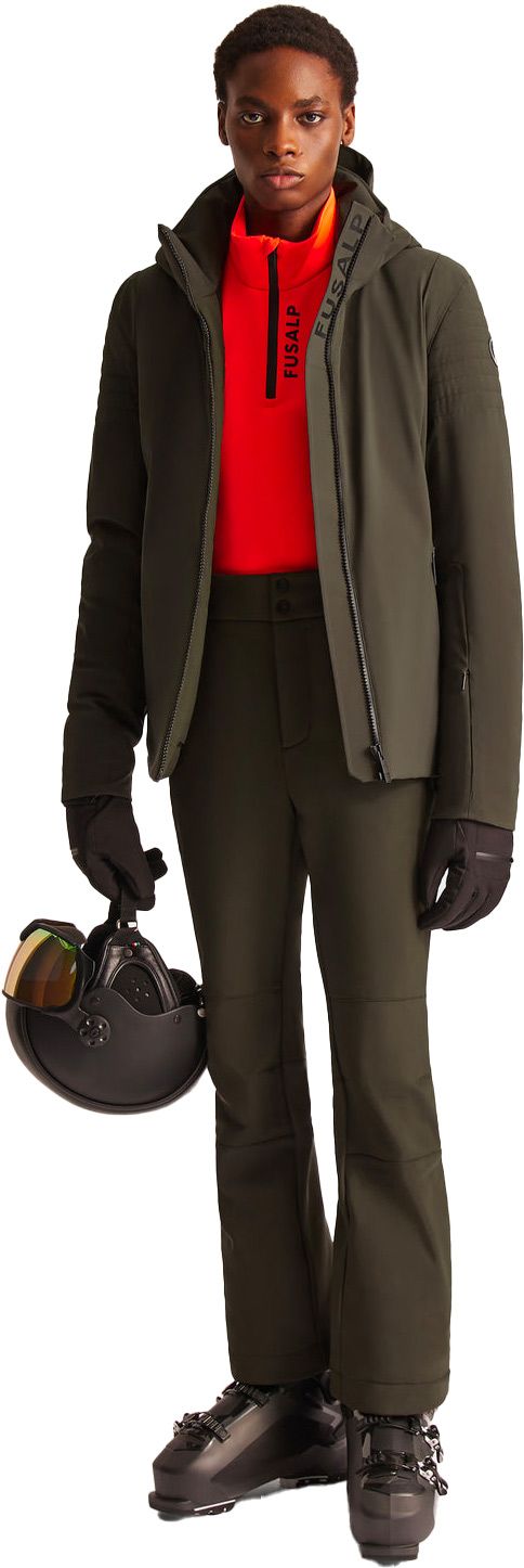 La veste de ski Power III Army Fusalp homme allie style sport-chic et technique : membrane imperméable respirante, isolation PrimaLoft®, coutures soudées, capuche amovible, jupe pare-neige et ventilations sous les bras.