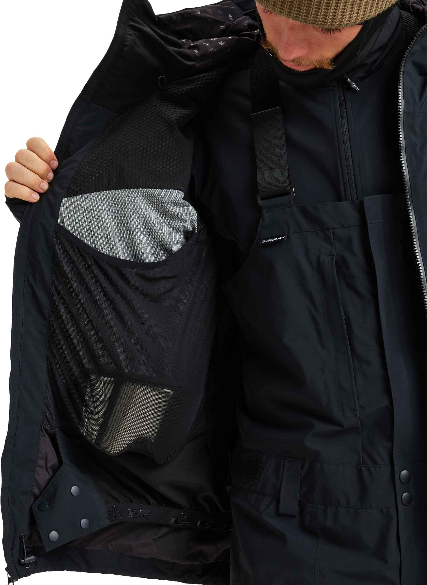 Veste de ski/snowboard Quiksilver Pro Path Stretch Gore-Tex homme : membrane Gore-Tex, isolation WarmFlight® x1, tissu stretch 50 % recyclé, coutures étanches YKK®, capuche compatible casque.