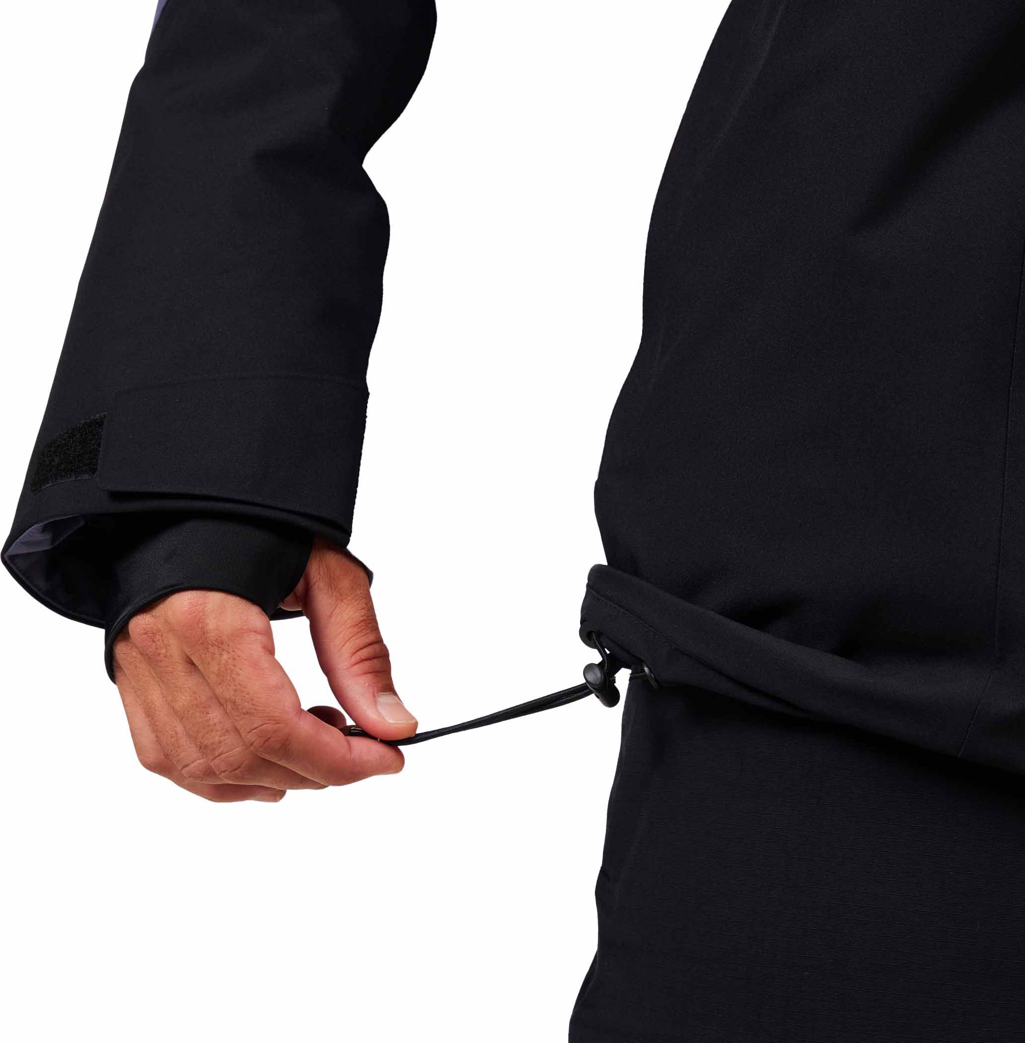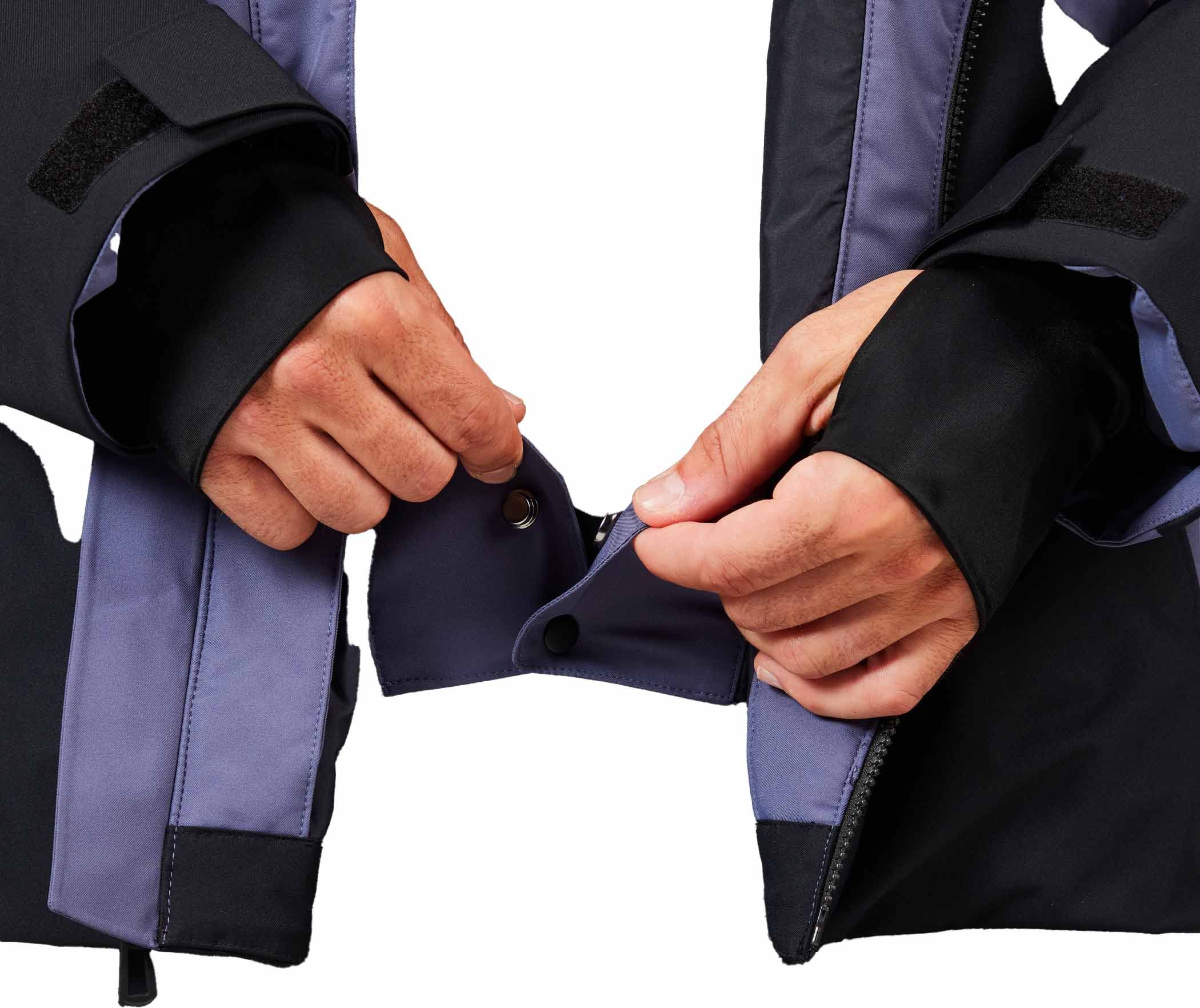 La protection contre les intempéries est assurée par un textile extensible en polyester 100 % recyclé, complété d’une membrane 20K/20K imperméable et respirante ainsi que d’un traitement déperlant sans PFC, le tout offrant une liberté de mouvement naturelle.