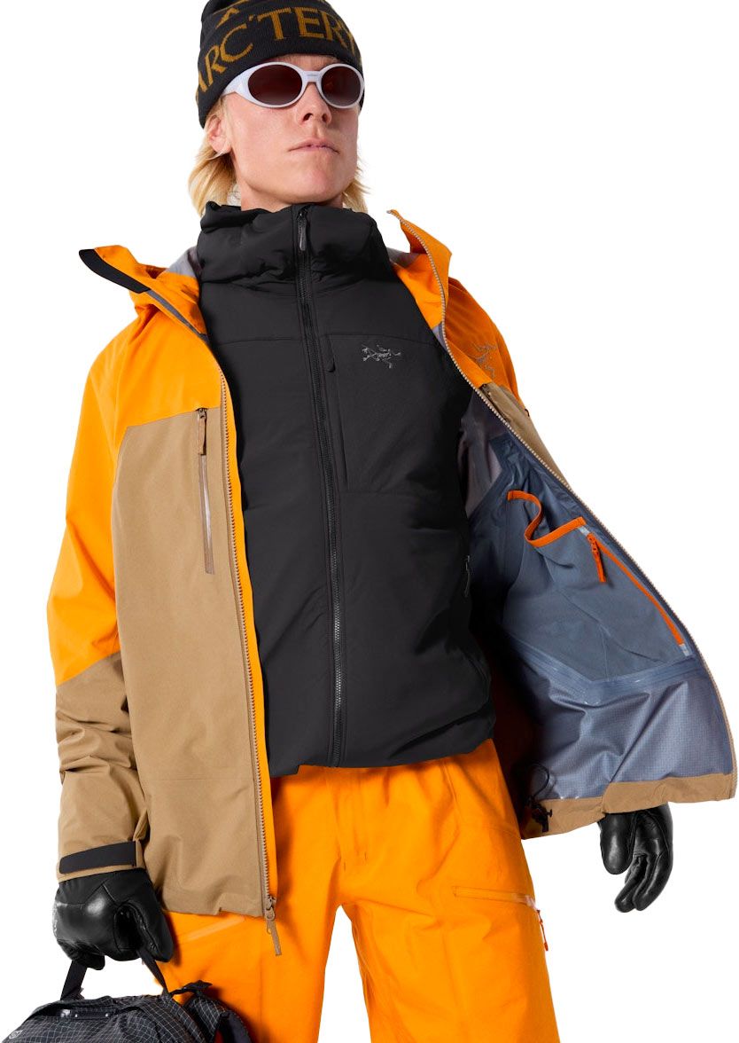 Veste ski Arc’teryx Rush Jacket GORE-TEX PRO ePE imper-respirante, coupe droite légère, capuche casque, ventilations, poches, RECCO.