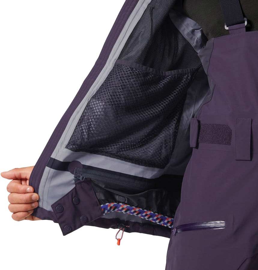 L’ajustement de la capuche permet son utilisation avec un casque. L’accessibilité des poches est pensée pour être conservée même en portant un sac à dos. La liberté de mouvement est assurée par des manches conçues avec des articulations. L’équipement comprend également une poche dédiée au forfait, une poche LIFE POCKET™ destinée au téléphone, ainsi qu’une jupe pare-neige. La sécurité est renforcée par l’intégration d’un système RECCO® utile en cas d’avalanche.