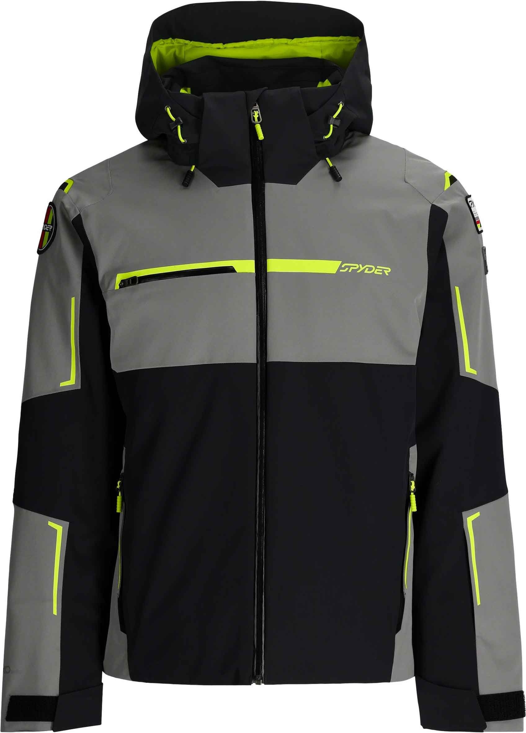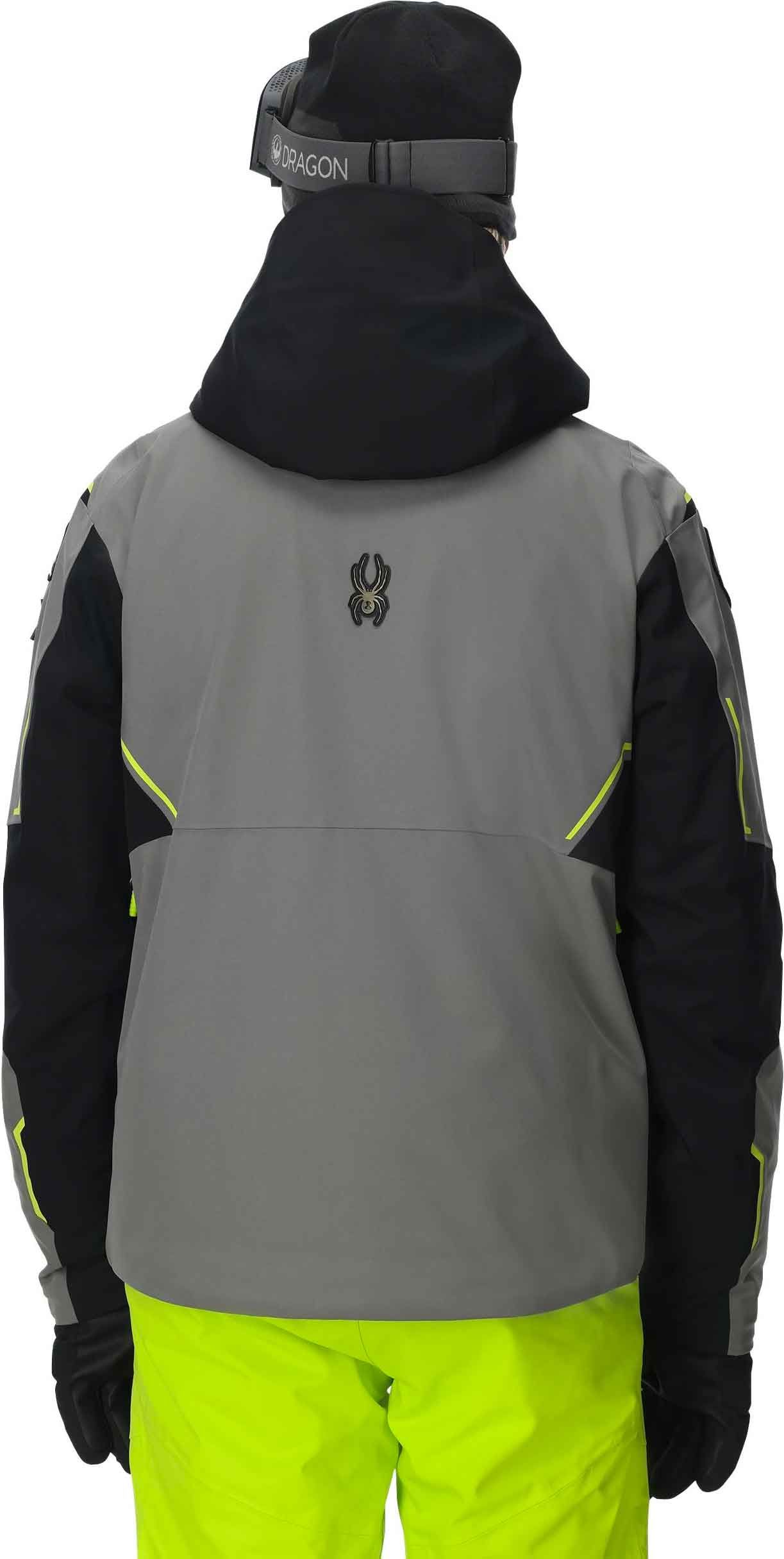 Veste de ski Spyder Titan Black homme : technologie EXO SHIELD 30K imperméable et respirante, isolation PrimaLoft® Silver ECO, coutures scellées, jupe pare-neige amovible et capuche casque-compatible pour une protection complète sur les pistes.