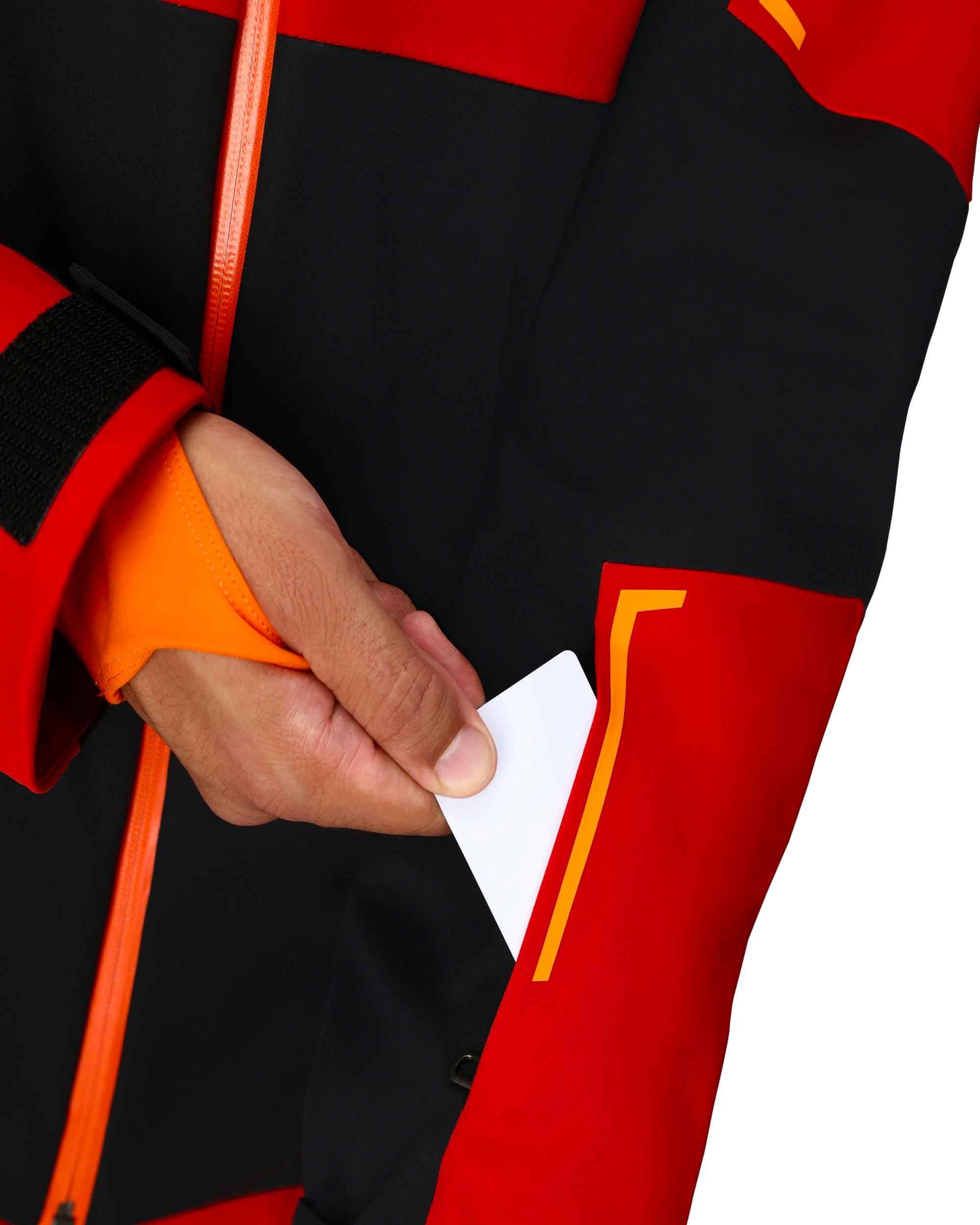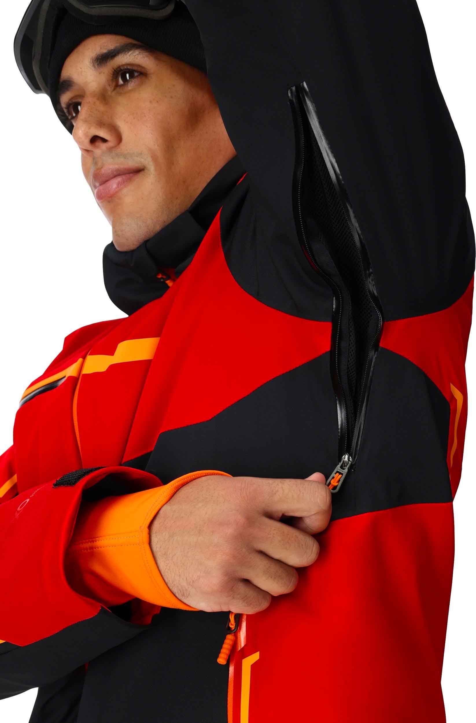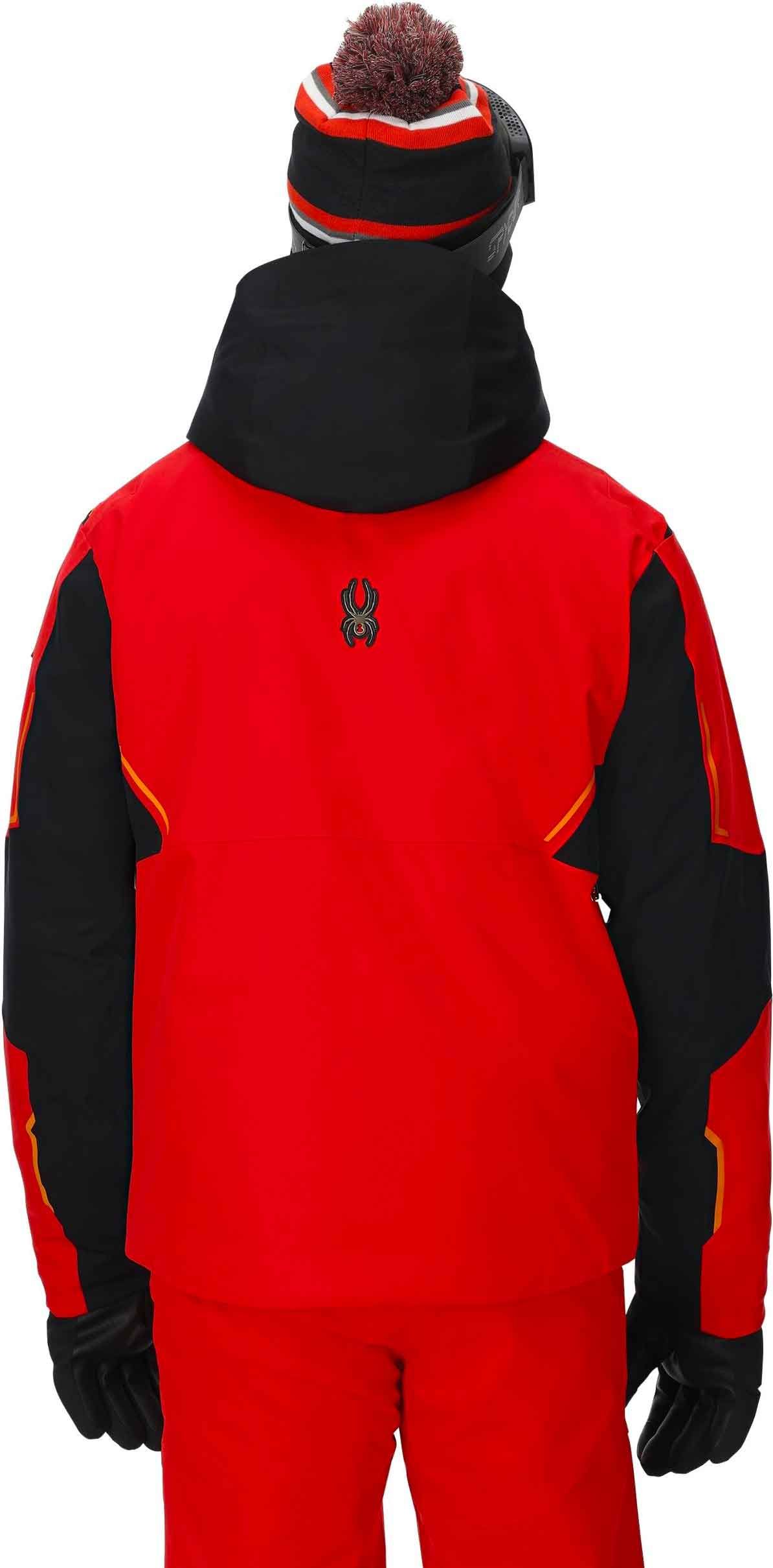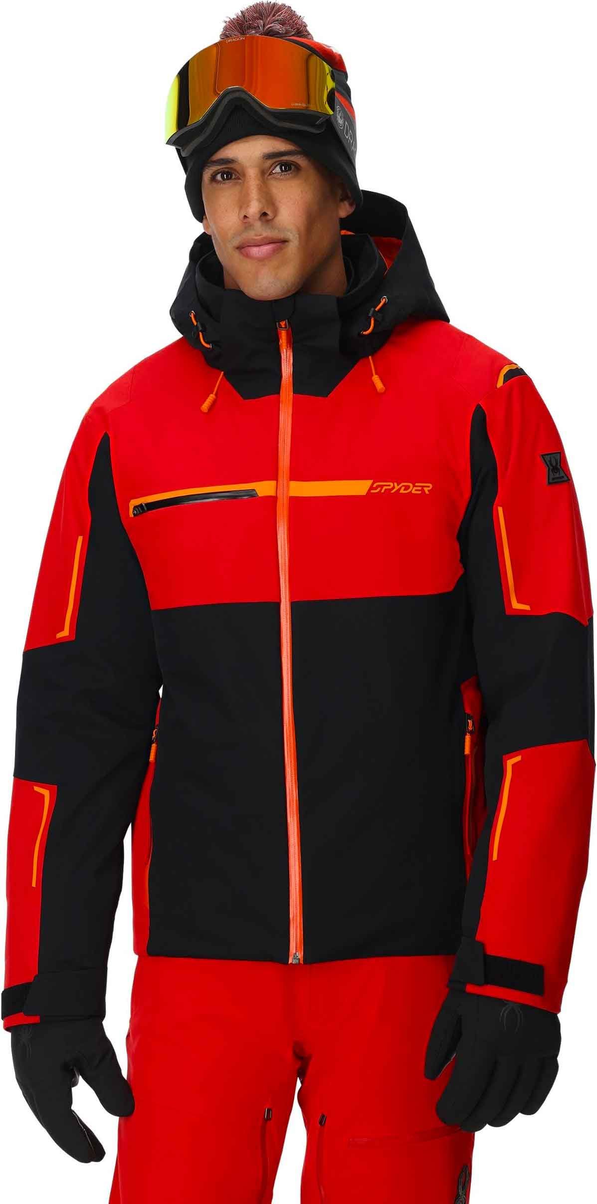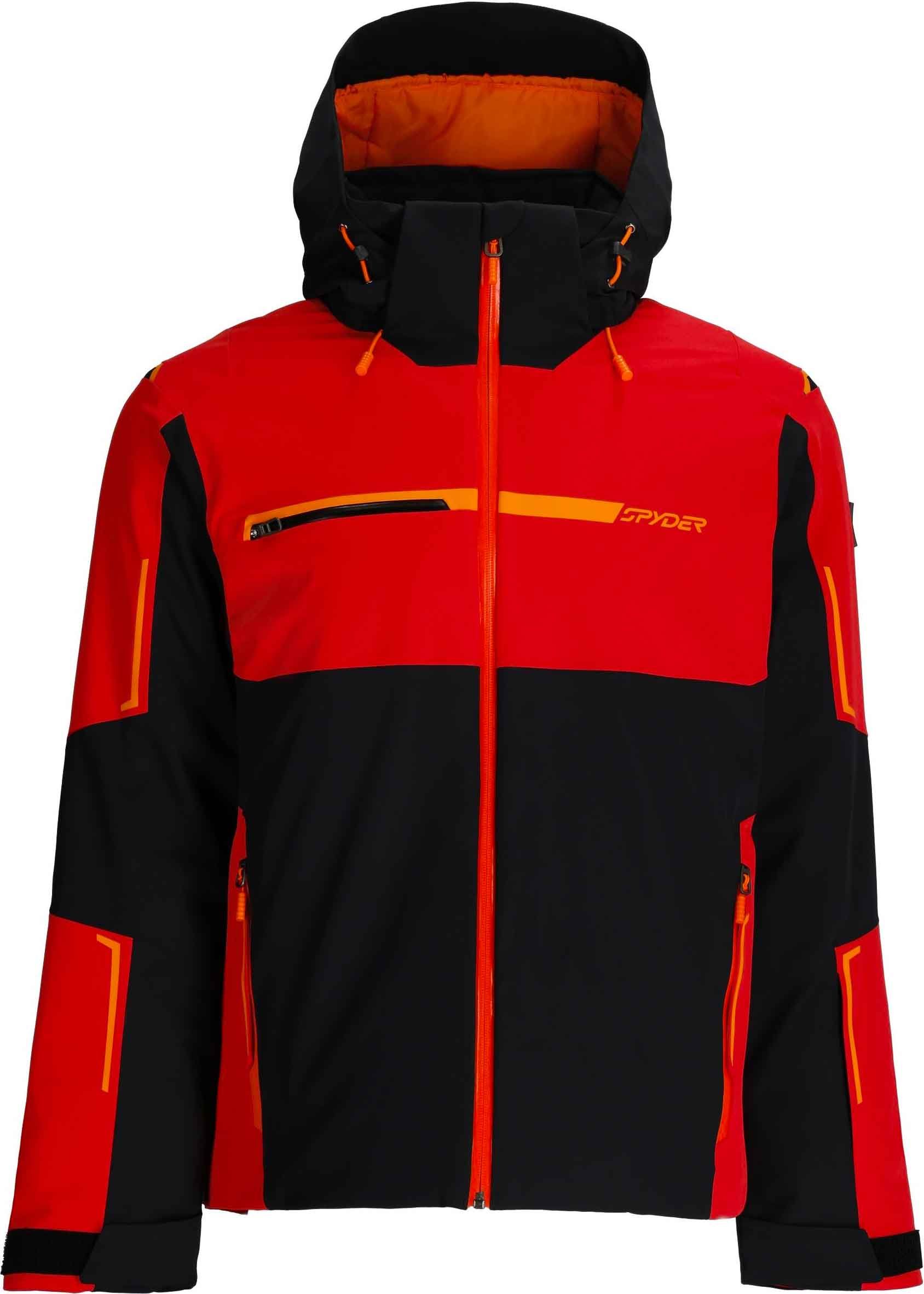 Veste de ski Spyder Titan Black homme : technologie EXO SHIELD 30K imperméable et respirante, isolation PrimaLoft® Silver ECO, coutures scellées, jupe pare-neige amovible et capuche casque-compatible pour une protection complète sur les pistes.